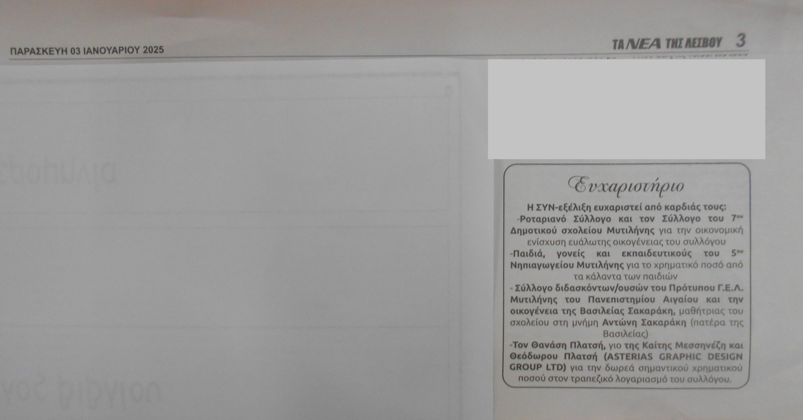 όπου επιδόθηκαν και τα χρήματα για τον Σύλλογο Συνεξέλιξη. https://blogs.sch.gr/5nipmytil/2024/12/