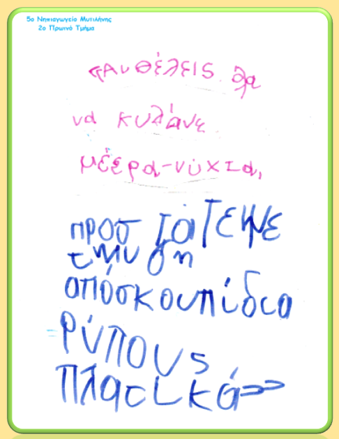 λέξεων» του Αντώνη Παπαθεοδούλου-εκδ. Μεταίχμιο. Τα παιδιά και των δύο νηπιαγωγείων, έγραψαν και