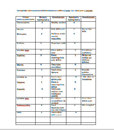 Παρατήρηση και καταγραφή συμπεριφορών μεταξύ των μαθητών/τριών για την