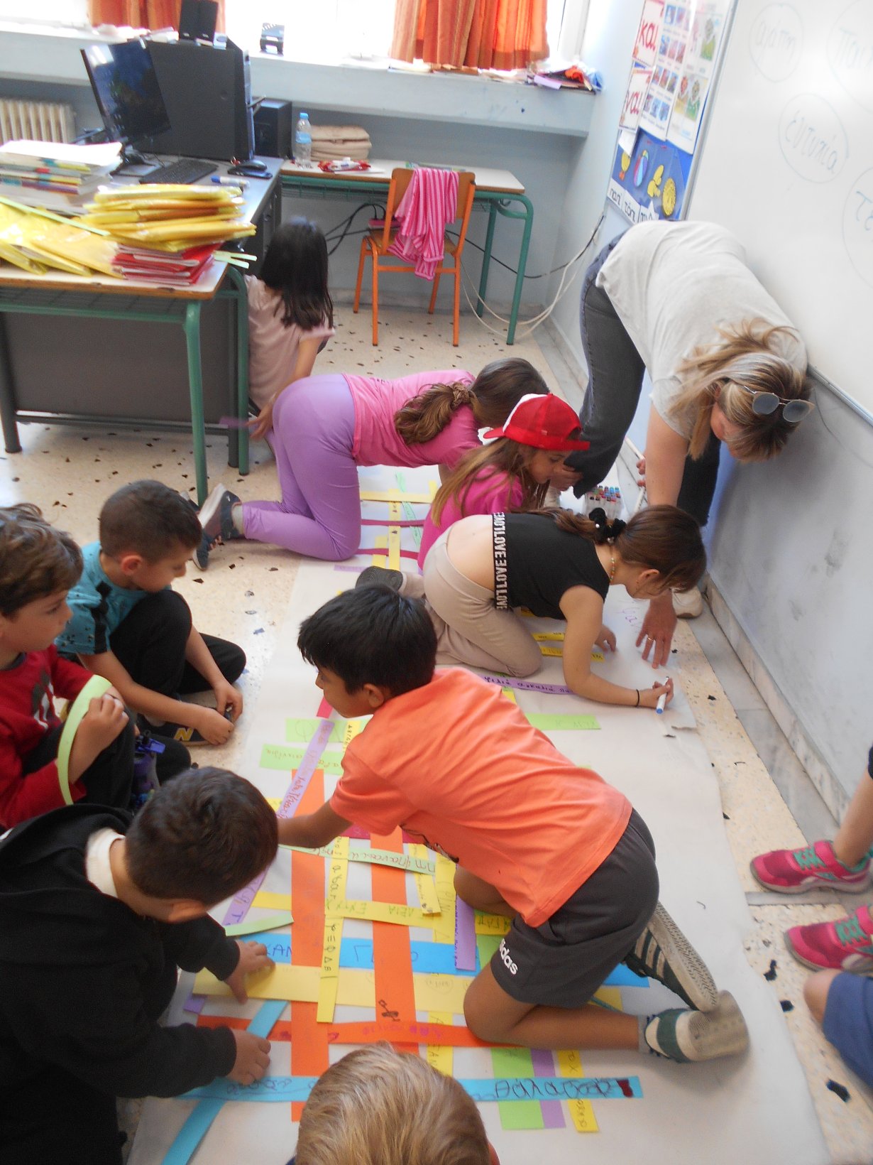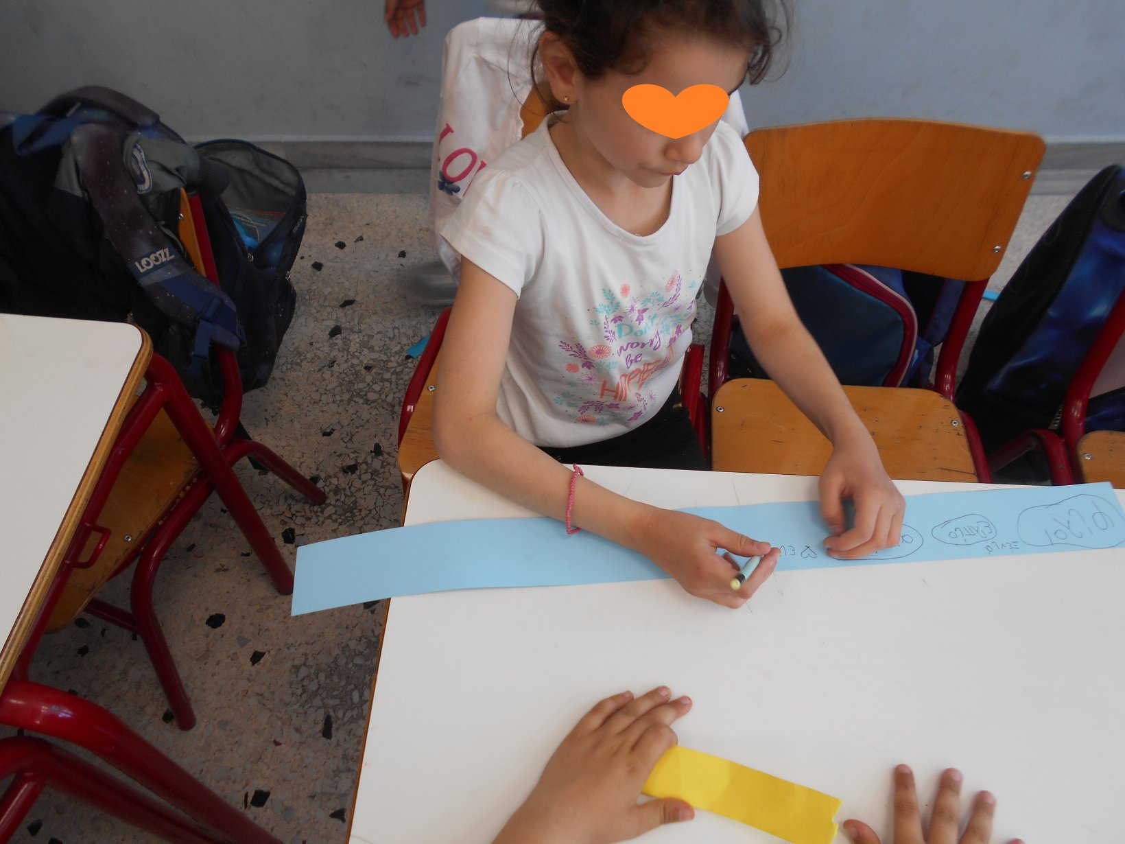 βιβλίο και όλα μαζί τα παιδιά αντίγραψαν τις λέξεις της φιλίας, σε χάρτινες λωρίδες και μετά συνέθεσαν, το