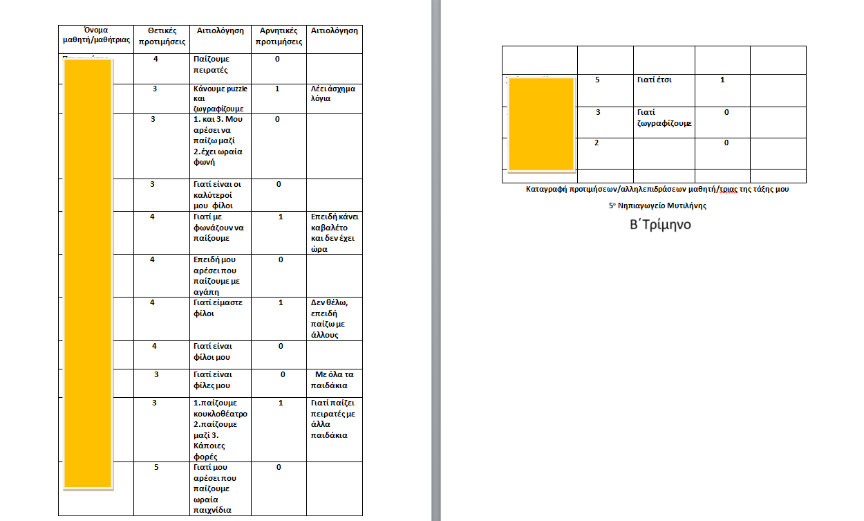 με την υποστήριξη ειδικών. Κάναμε το Κοινωνιόγραμμα των παιδιών για τις προτιμήσεις τους, σε σχέση με τους
