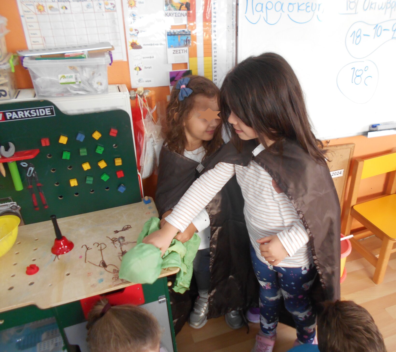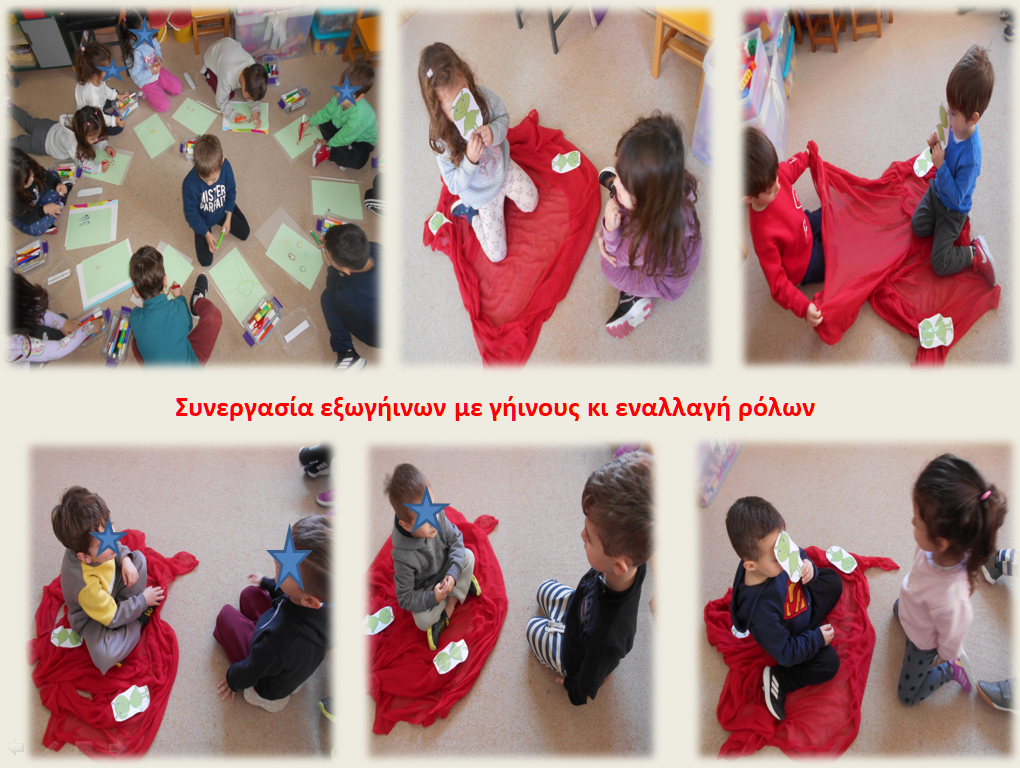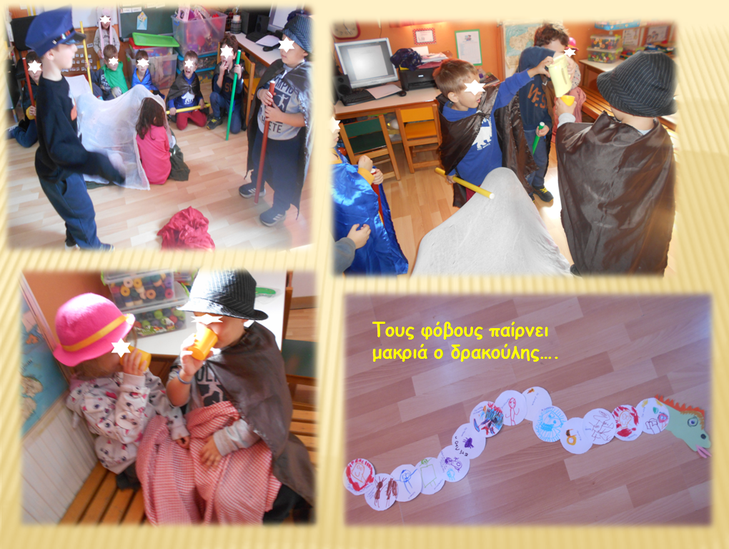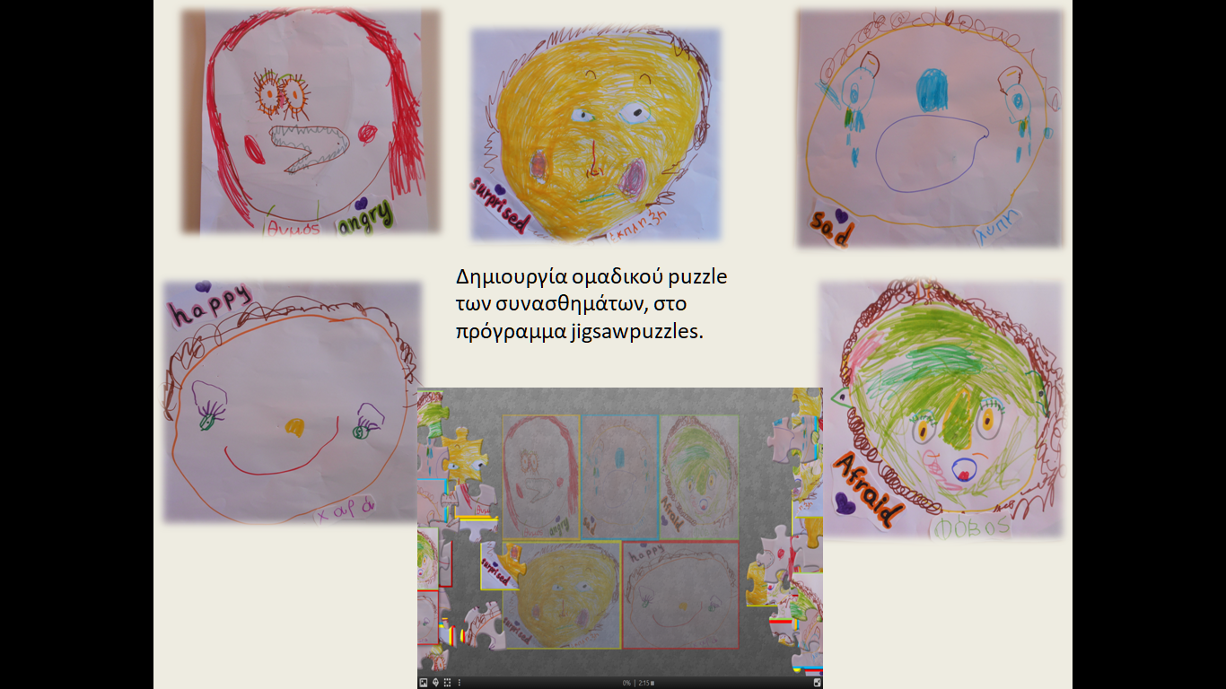 Διαβάζαμε τα παραμύθια, συζητούσαμε για τα συναισθήματα των ηρώων. Ο φόβος θέλει επίδειξη ψυχραιμίας για να βρούμε τον καλύτερο τρόπο αντιμετώπισης, ζήλεια, θυμός, χαρά. Μετά τα παιδιά τα δραματοποιούσαν και τέλος τα ζωγράφιζαν. Το εργαστήρι αυτό, περιλαμβάναται στο Σχέδιο Δράσης : ” Χέρι, χέρι προχωράμε… παίζουμε, γελάμε, αγαπάμε”.