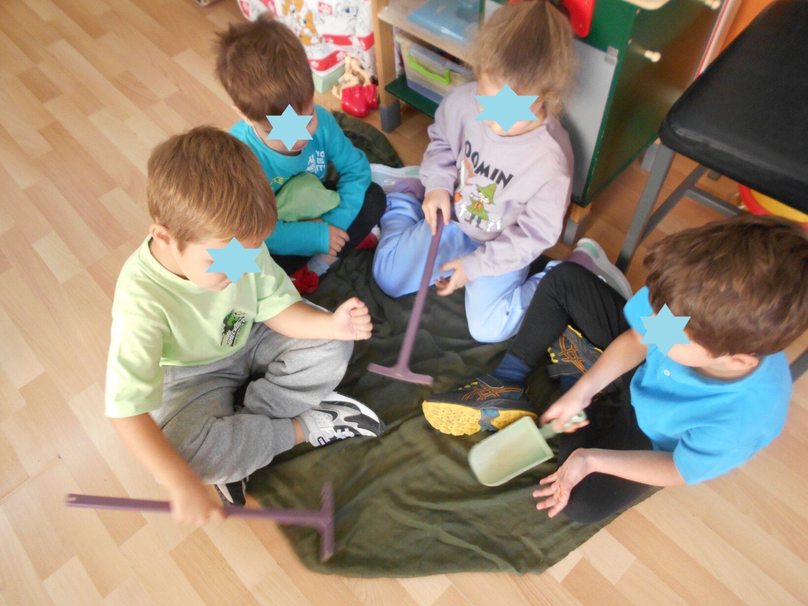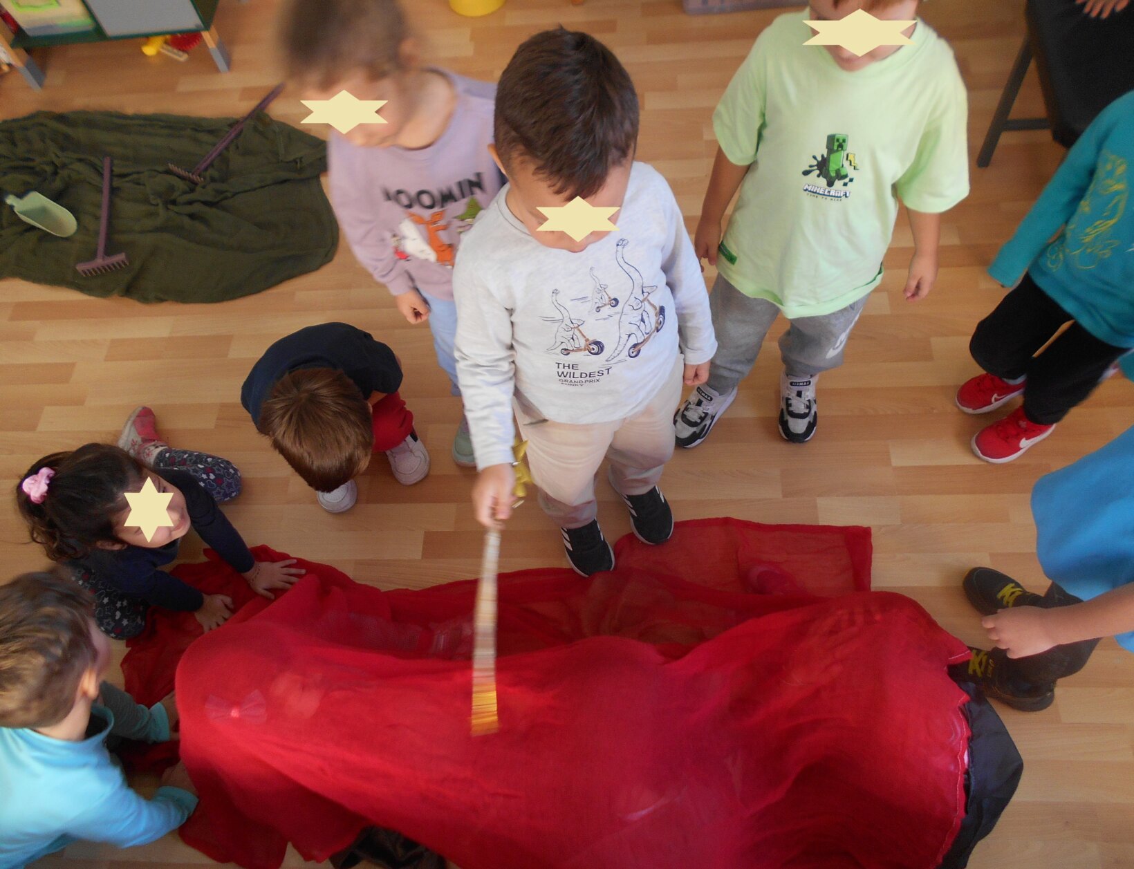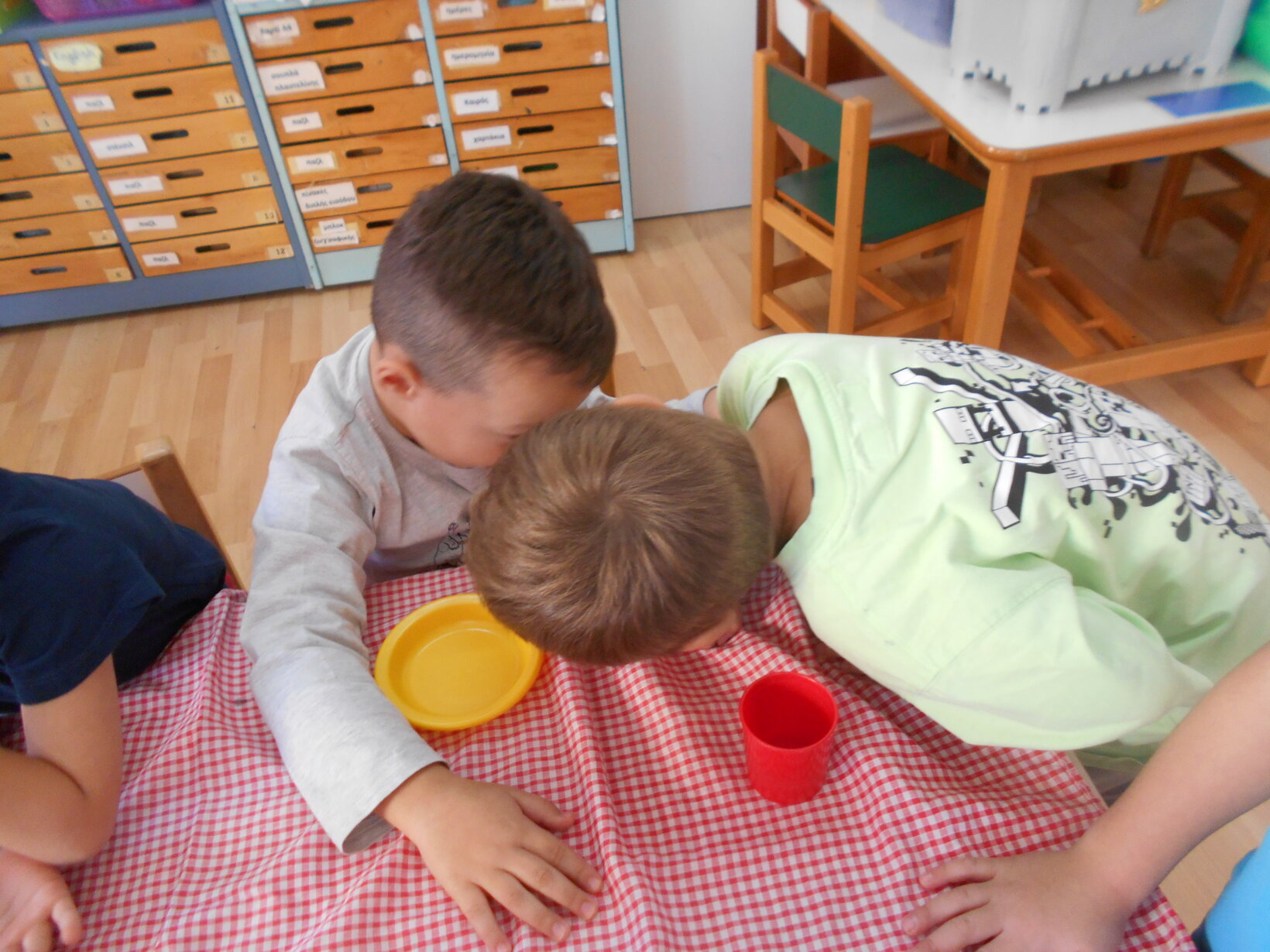 Διαβάζαμε τα παραμύθια, συζητούσαμε για τα συναισθήματα των ηρώων. Ο φόβος θέλει επίδειξη ψυχραιμίας για να βρούμε τον καλύτερο τρόπο αντιμετώπισης, ζήλεια, θυμός, χαρά. Μετά τα παιδιά τα δραματοποιούσαν και τέλος τα ζωγράφιζαν. Το εργαστήρι αυτό, περιλαμβάναται στο Σχέδιο Δράσης : ” Χέρι, χέρι προχωράμε… παίζουμε, γελάμε, αγαπάμε”.