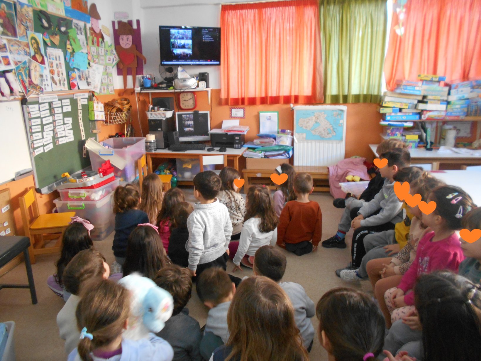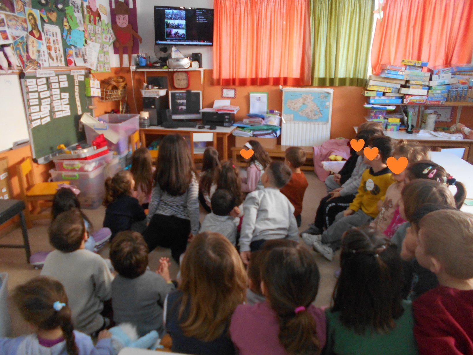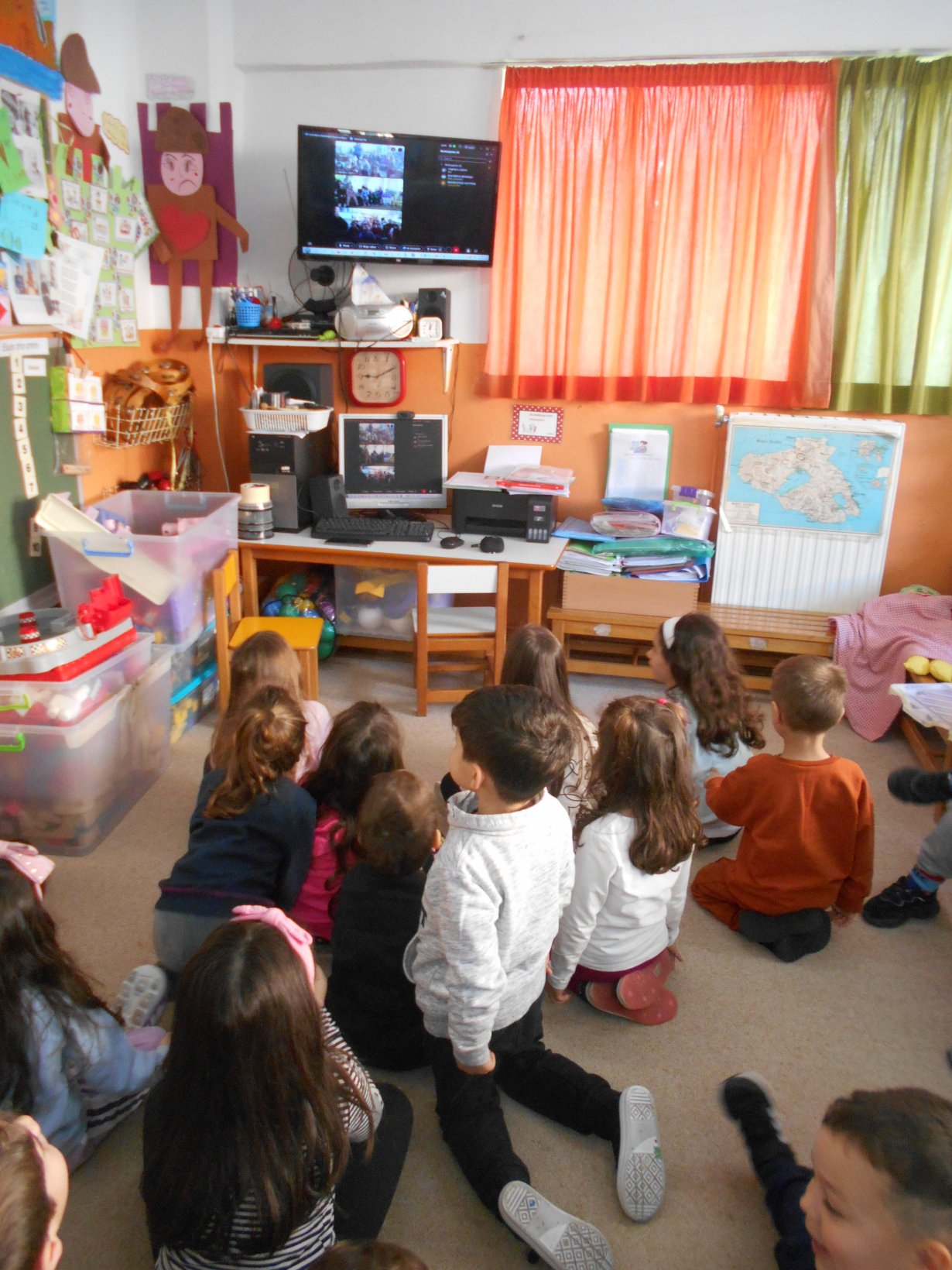 Σήμερα επικοινωνήσαμε με τα παιδιά του Νηπιαγωγείου Λουτρών και με το 12 Νηπιαγωγείο (Αλυφαντά) μέσω της πλατφόρμας Webex. Ήταν μια όμορφη εμπειρία γιατί τα παιδιά γνωρίστηκαν μεταξύ τους, έψαλλαν τα κάλαντα του Λαζάρου κι αντάλλαξαν πληροφορίες για τις πασχαλινές κατασκευές που δημιούργησαν στο κάθε νηπιαγωγείο.