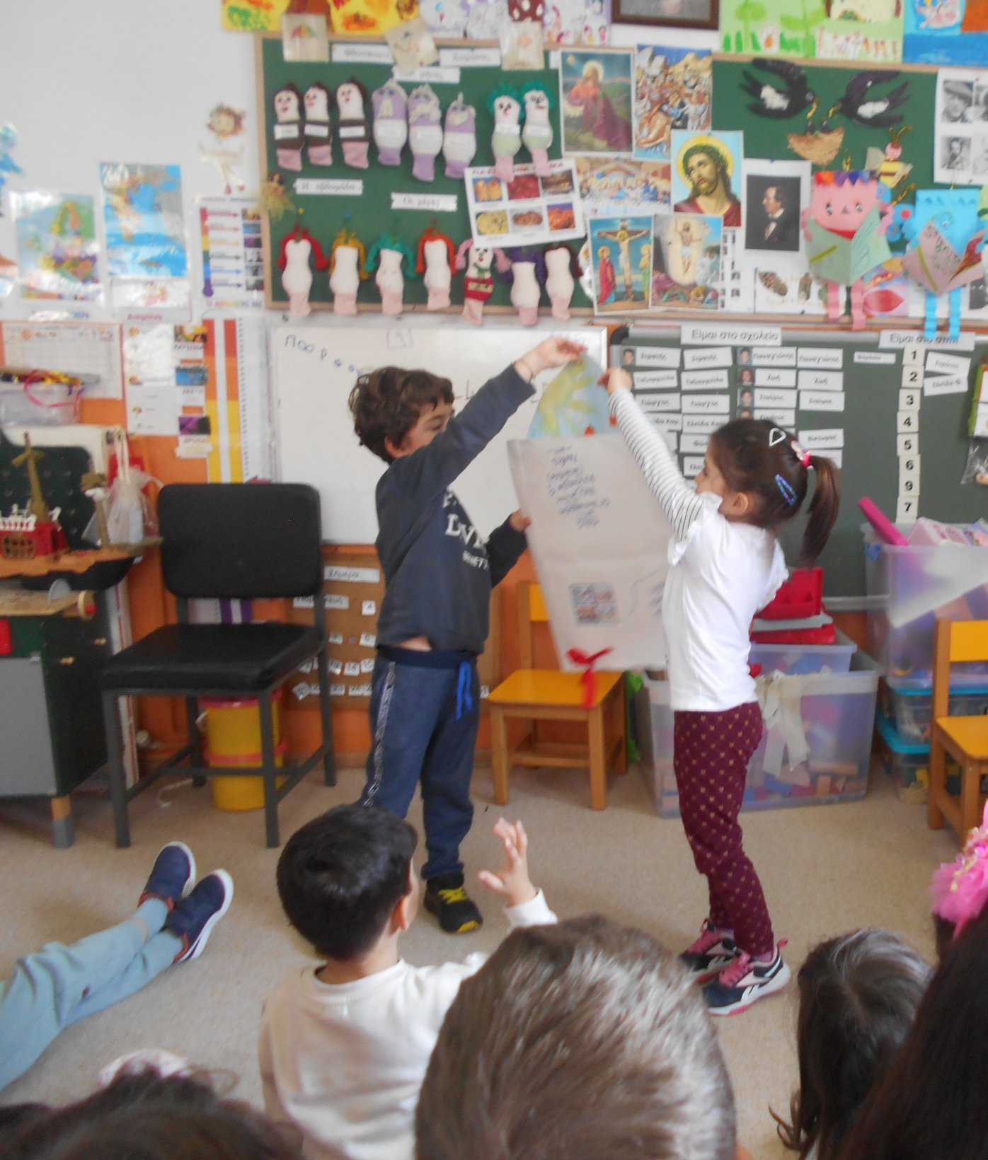 Οι Κοινότητες Μάθησης – Ομάδες Σχολείων, έχουν δημιουργηθεί (Μυτιλήνη, 18/12/2024, Αρ. Πρωτ.:9337-Σύμβουλος Νηπιαγωγών: Ευανθία Χατζηγιάννη), με βάση τα Σχέδια Δράσης που εκπονήθηκαν από τις σχολικές μονάδες για το σχολικό έτος 2024-2025. Τα σχέδια αυτά, ως εργαλεία Συλλογικού Προγραμματισμού, προσφέρουν τη βάση για την ανάπτυξη συνεργασιών και την εφαρμογή κοινών στρατηγικών που στόχο έχουν την αποτελεσματική αντιμετώπιση των εκπαιδευτικών προκλήσεων. Μια μεγάλη έκπληξη μας περίμενε και στην είσοδο του νηπιαγωγείου μας αλλά και στο ηλεκτρονικό μας ταχυδρομείο. Λάβαμε ευχετήριες κάρτες για το Πάσχα, ηλεκτρονική, από το Νηπιαγωγείο Λουτρών και ηλεκτρονική κι έντυπη από το 12 Νηπιαγωγείο (Αλυφαντά). Όμως κι εμείς τους ταχυδρομήσαμε τις δικές μας κάρτες για το Πάσχα. Η δράση αυτή περιλαμβάνεται επίσης στο Σχέδιο Δράσης 2024-25:”Χέρι, χέρι προχωράμε.. παίζουμε, γελάμε, αγαπάμε”.