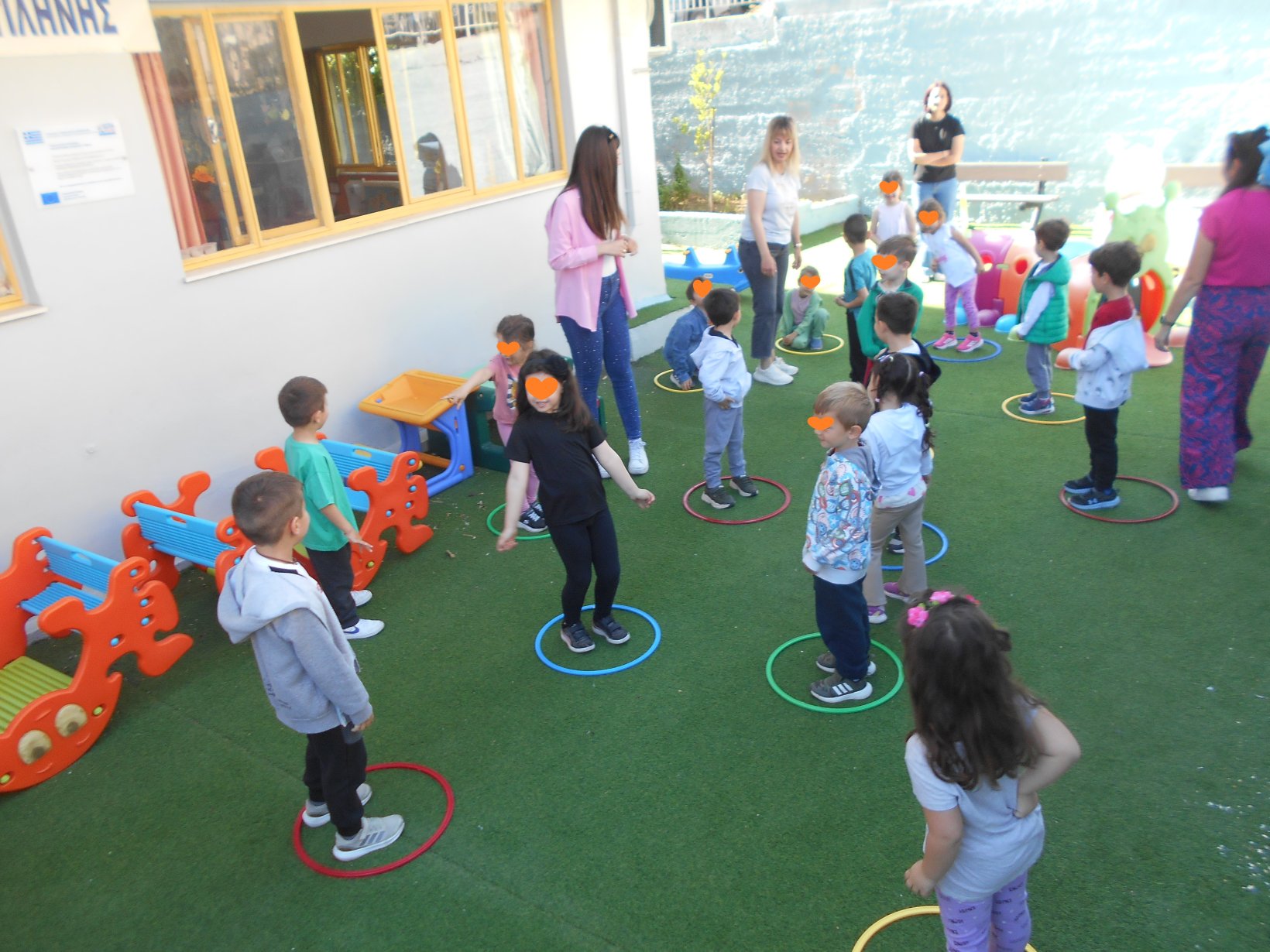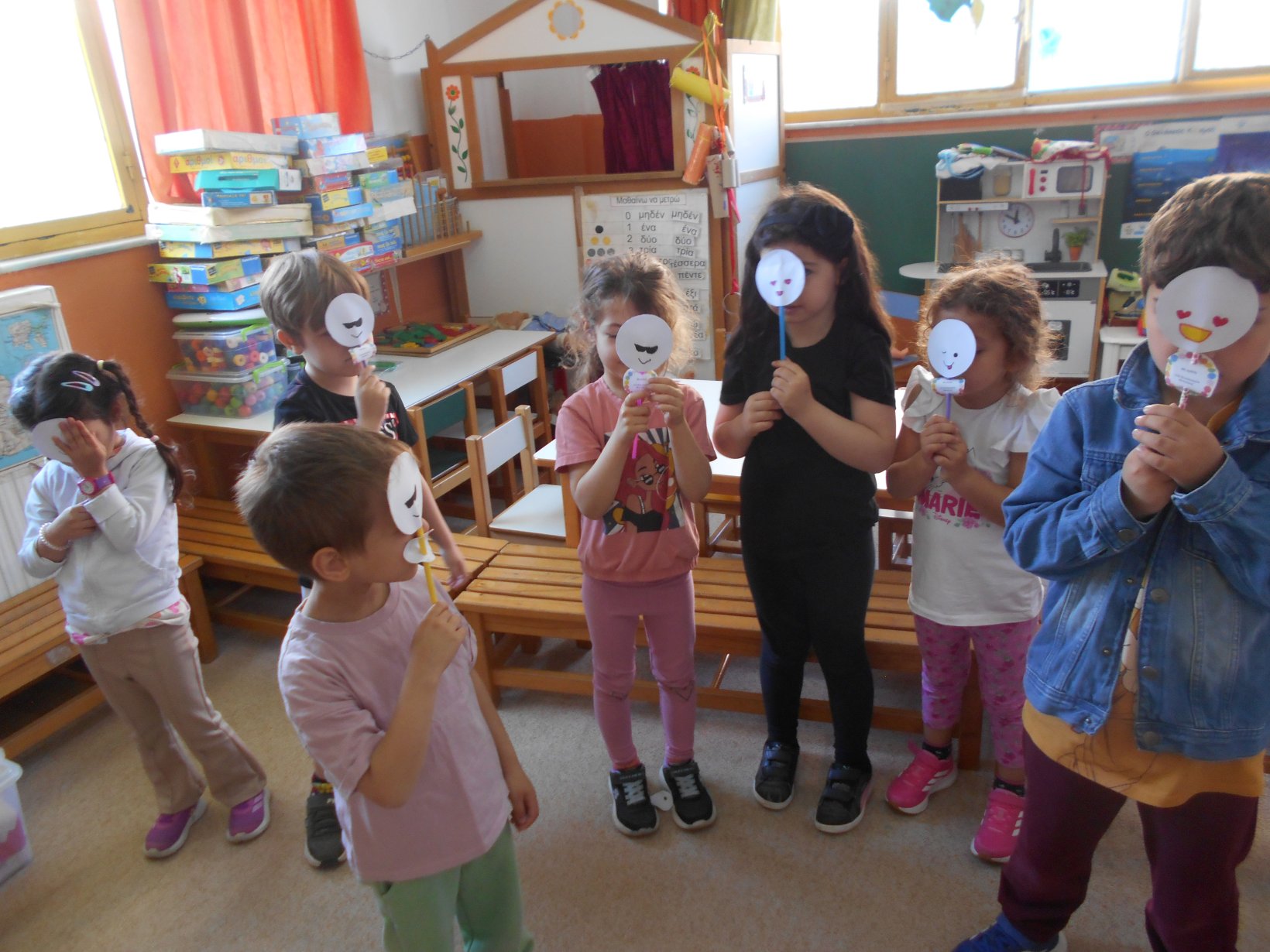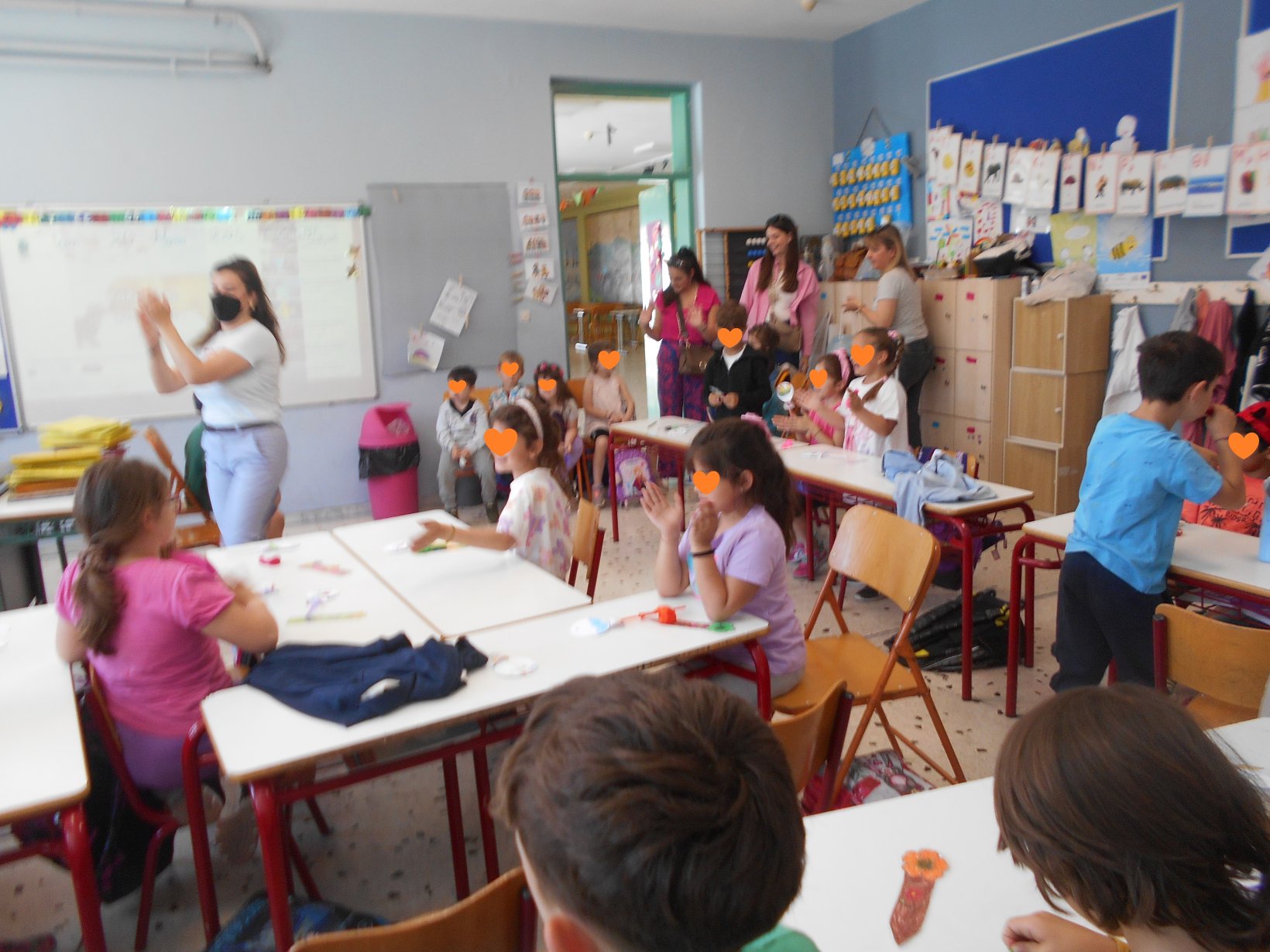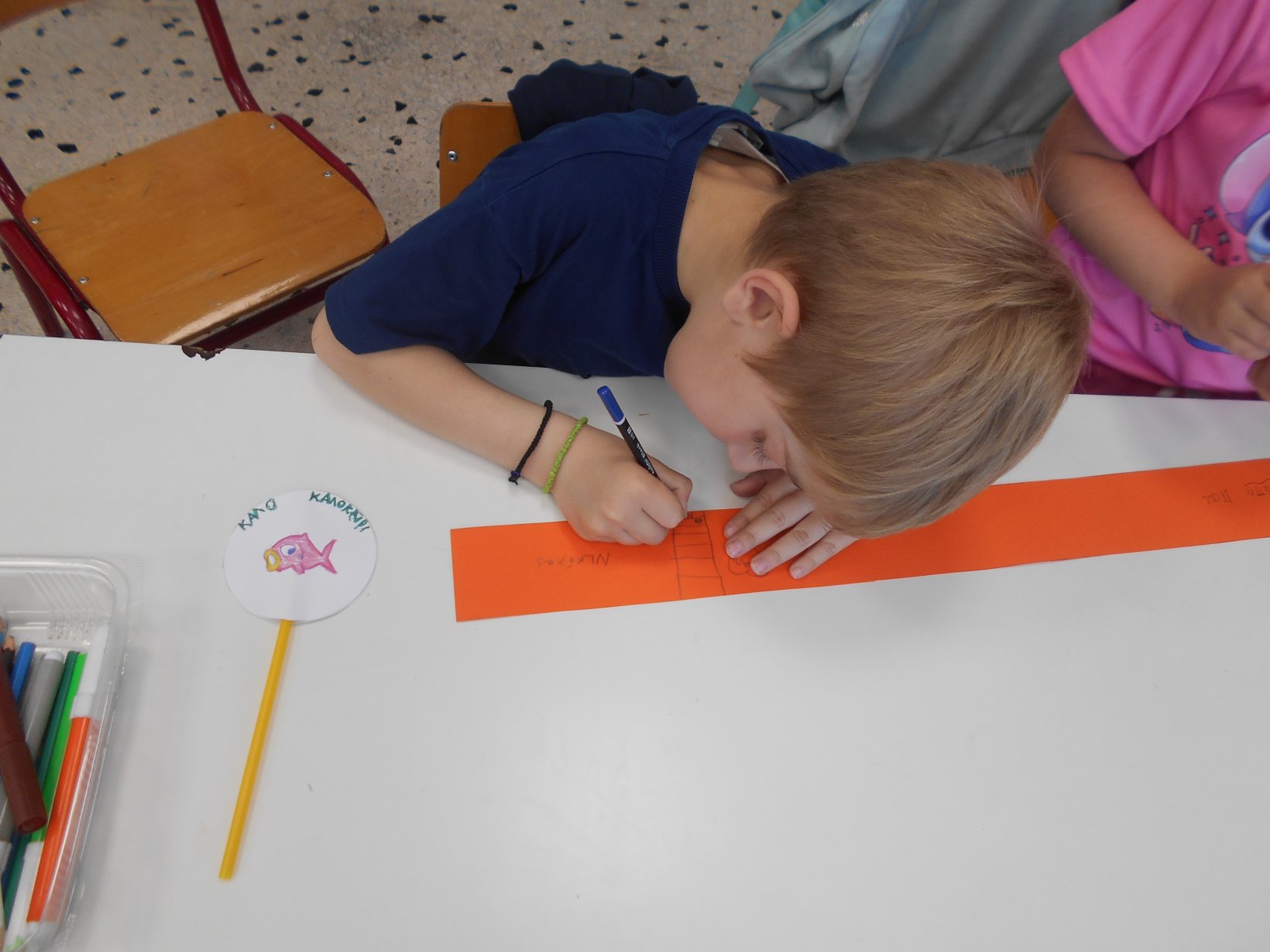 Όλοι μαζί 5ο και 12ο Νηπιαγωγείο, μεταβήκαμε στο 15ο δημοτικό Σχολείο για το πρόγραμμα: “Ομαλή μετάβαση από το νηπιαγωγείο στο Δημοτικό Σχολείο”. Είχαμε συνεννοηθεί, με την δασκάλα της Α΄ Δημοτικού κι αφού αφηγηθήκαμε το παραμύθι, όλα τα παιδιά αντέγραψαν λέξεις της Φιλίας σε κάνσον λωρίδες, με σκοπό να πλέξουμε ‘Το υφαντό της Αγάπης’. Ήταν μα πολύ όμορφη συνεργασία και των τριών σχολείων!!!!