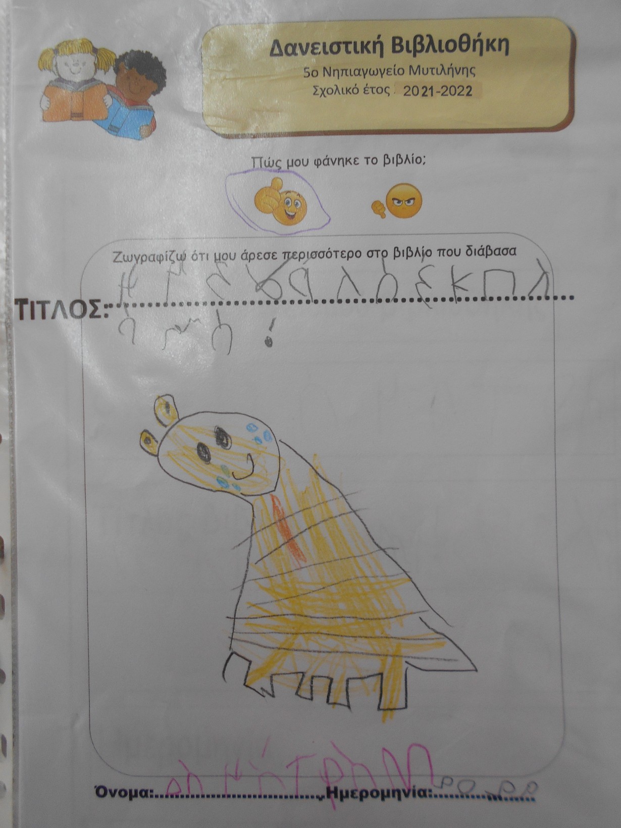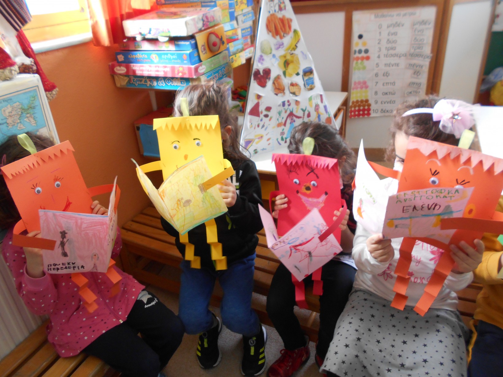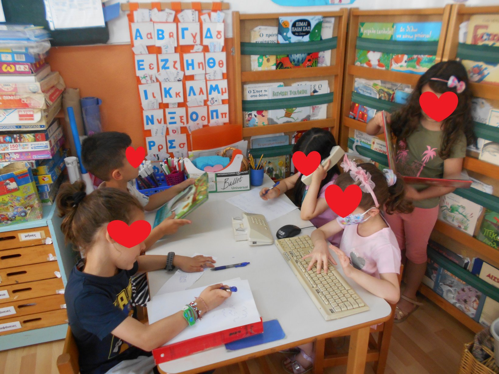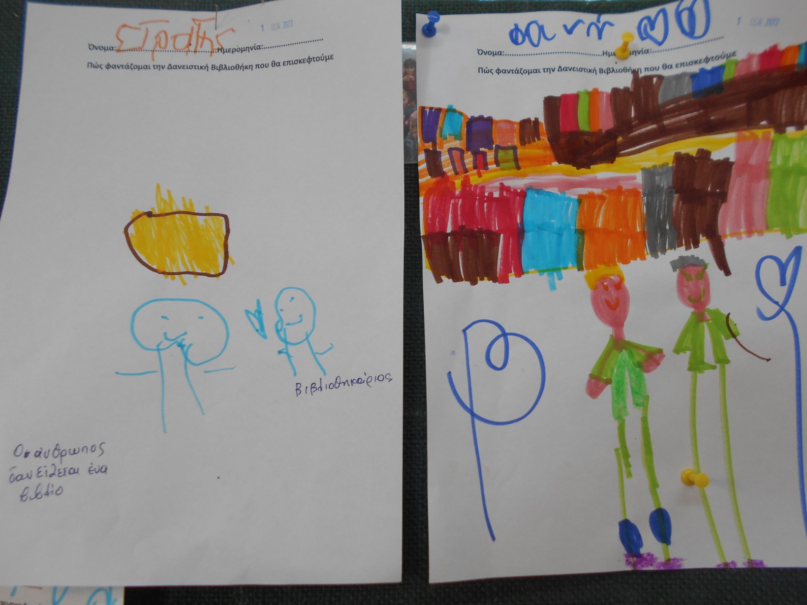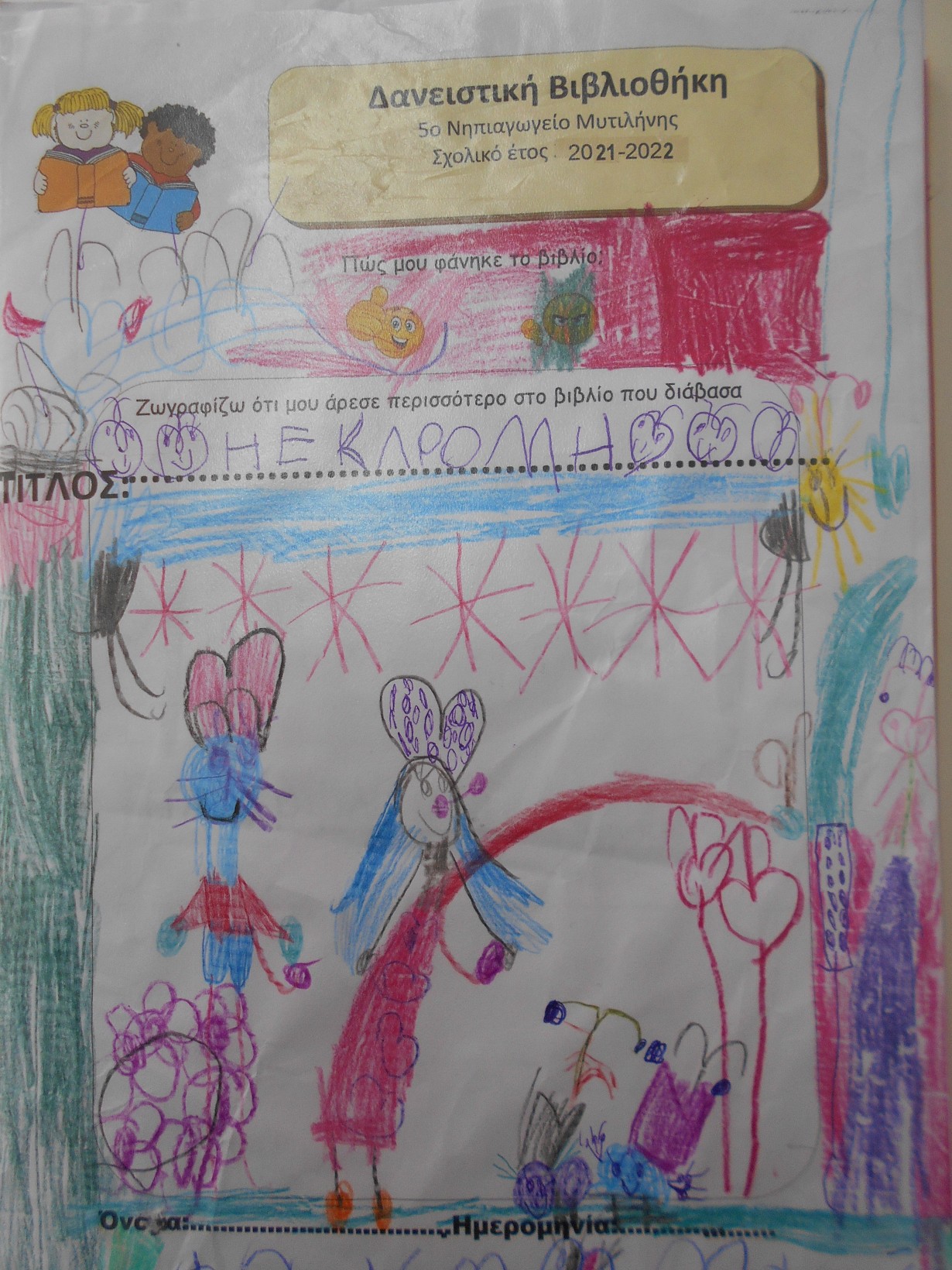 Τα παιδιά (νήπια και προνήπια) καθημερινά στις ελεύθερες δραστηριότητες δημιουργούσαν τα δικά τους παραμύθια. Περίμεναν με ανυπομονησία να τα παρουσιάσουν στην ολομέλεια της τάξης. Οργανώσαμε την επίσκεψή μας στην Δανειστική Βιβλιοθήκη “Ευγενία Κλειδαρά”. Τα παιδιά έφτιαξαν την αφίσα του σωστού Αναγνώστη και μαζί με την αφίσα με τους κανόνες της δανειστικής βιβλιοθήκης τα πρόσφεραν δώρο κατά την επίσκεψή μας. Ζωγράφισαν πώς φαντάζονται την Βιβλιοθήκη πριν την επισκεφτούμε και μετά τι τα εντυπωσίασε. Καθημερινά ήθελαν να παίζουν στο Νηπιαγωγείο Δανειστική Βιβλιοθήκη, στο συμβολικό τους παιχνίδι.