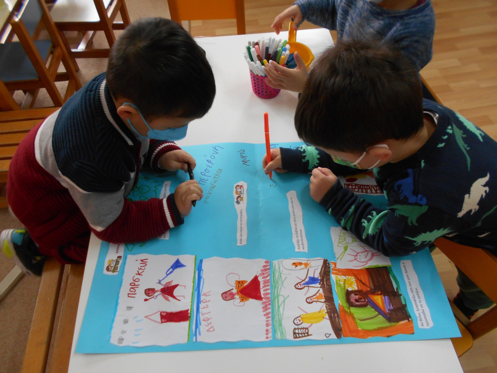 Τα παιδιά δημιουργούν το δικό τους παραμύθι. Κάποια γράφουν με αναδυόμενη γραφή τον τίτλο ή την υπόθεση, συμπληρώνουν τον/την συγγραφέα, ημερομηνία στο εξώφυλλο. Ετοιμάζουν τον Μικρό Αναγνώστη και παρουσιάζουν τα παραμύθια τους στην ολομέλεια της τάξης!