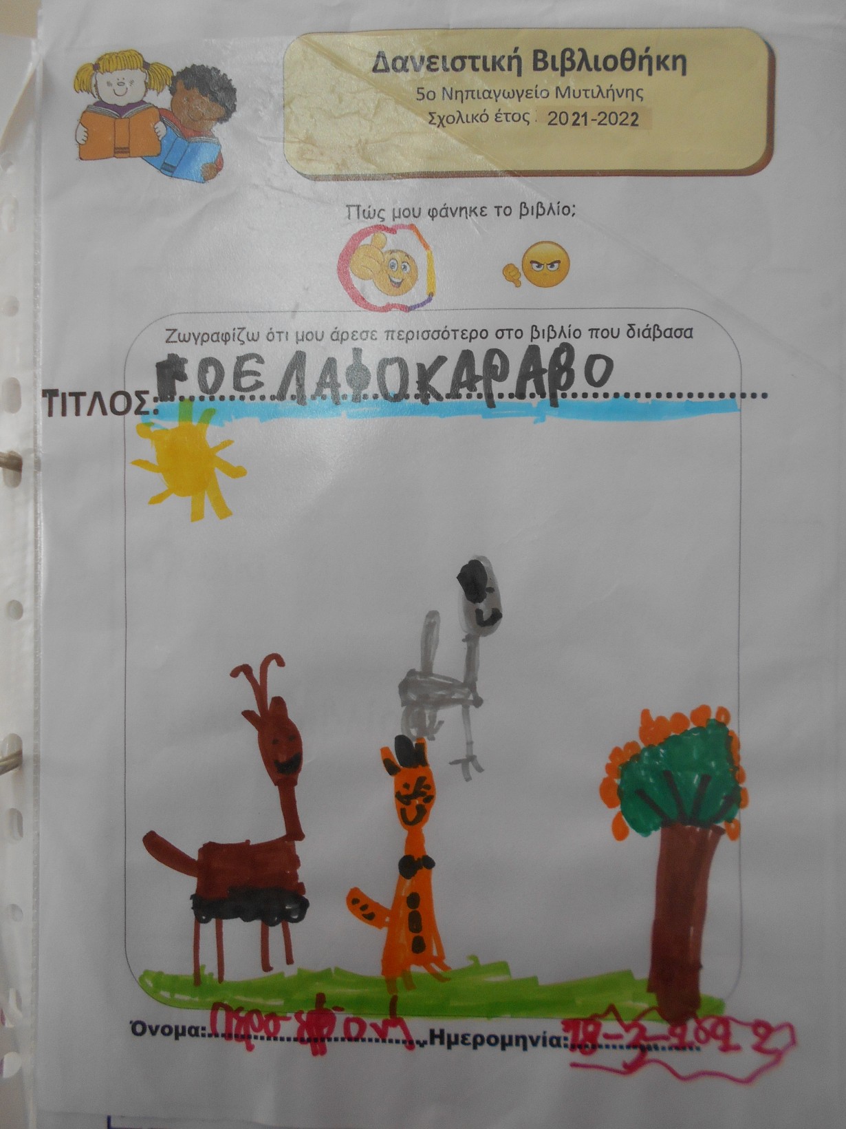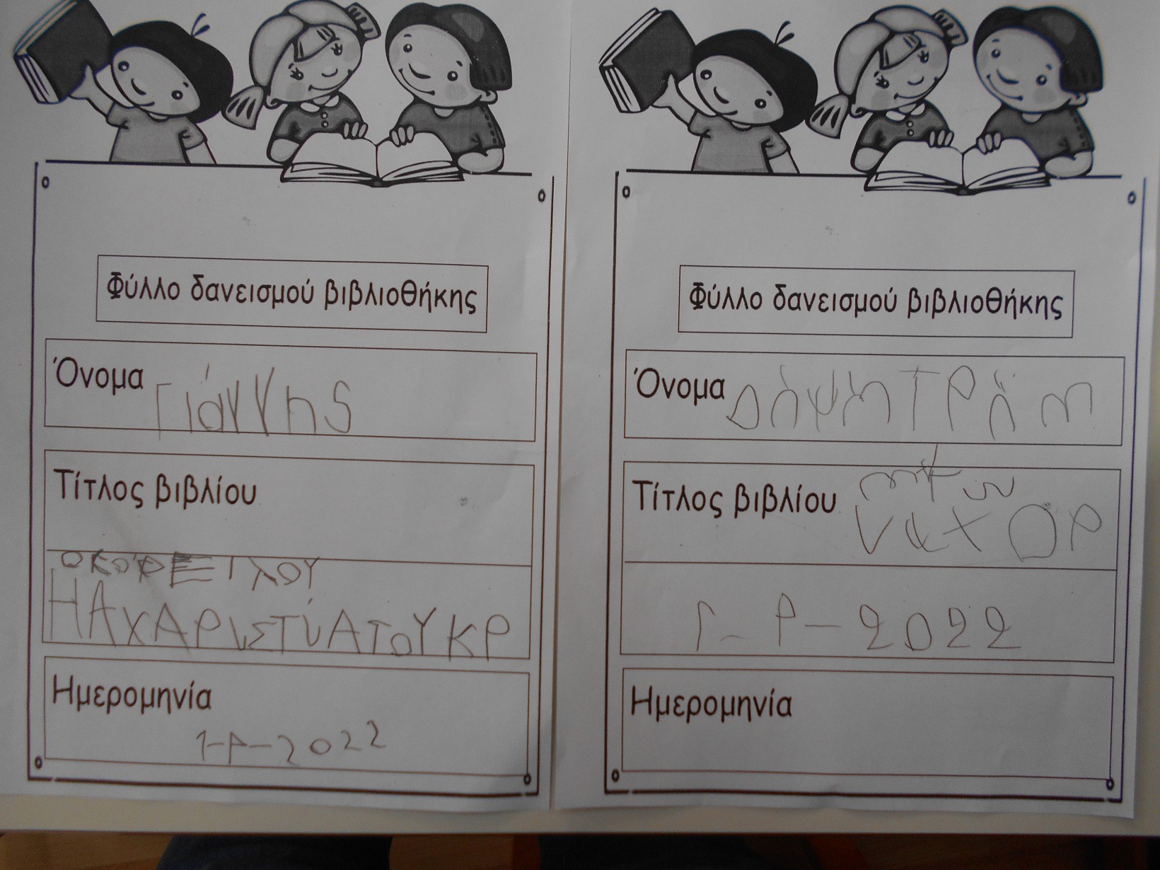 Δανειστική αλλά και Χαριστική βιβλιοθήκη αφού τα βιβλία μας χαρίζουν “γνώση” σε κάθε επίπεδο της προσωπικής μας ταυτότητας. Αλλά και τα παιδιά χαρίζουν την “γνώση” αυτή στους φίλους τους. Την Δευτέρα ημέρα επιστροφής των βιβλίων στο νηπιαγωγείο, τα παρουσιάζουν στην ολομέλεια της τάξης, περιμένοντας με πολλή υπομονή να έρθει η σειρά τους. Αρχικά μιλήσαμε για τους κανόνες της Δανειστικής -Χαριστικής Βιβλιοθήκης. Τα παιδιά δημιούργησαν ένα πίνακα αναφοράς με αυτούς και τον αναρτήσαμε στην γωνιά της βιβλιοθήκης. Ενημερώσαμε τους γονείς των παιδιών, σε διαδικτυακή συνάντηση για την έναρξη της δανειστικής βιβλιοθήκης. Ζητήσαμε να υπογράψουν το Συμβόλαιο της Δανειστικής βιβλιοθήκης με τα παιδιά τους στο σπίτι, εμπλέκοντάς τους στην όλη διαδικασία. Επίσης μαζί στείλαμε έντυπο με πλήρεις οδηγίες. Το φύλλο Δανεισμού συμπληρώνεται από τα παιδιά την Παρασκευή ημέρα που δανείζονται βιβλία και παραμένει στο φάκελο της Δανειστικής Βιβλιοθήκης. Για το σπίτι παίρνουν το έντυπο όπου μπορούν να ζωγραφίσουν και να αξιολογήσουν το βιβλίο που διάβασαν. Το έντυπο αυτό το παρουσιάζουν στην ολομέλεια της τάξης, μαζί με το βιβλίο τους. “Ο Ύμνος του Βιβλίου”, του Ευγ. Τριβιζά είναι το αγαπημένο ποίημα των παιδιών, γι αυτό το πλαστικοποιήσαμε και το έχουν μόνιμα, πάνω στην ατομική τους τσάντα, της δανειστικής βιβλιοθήκης.