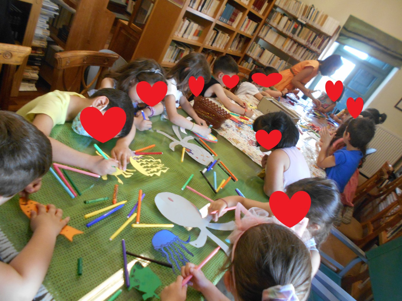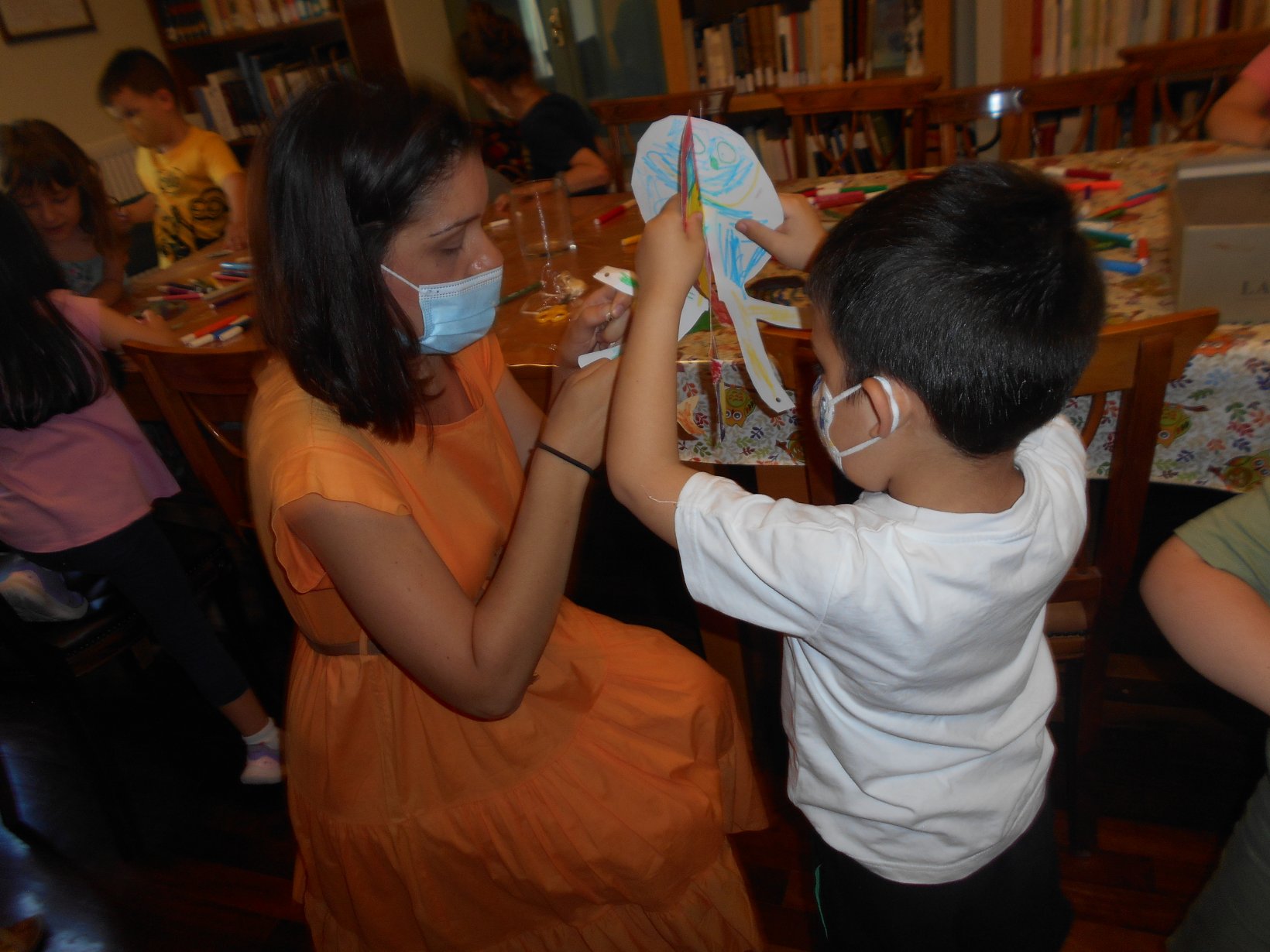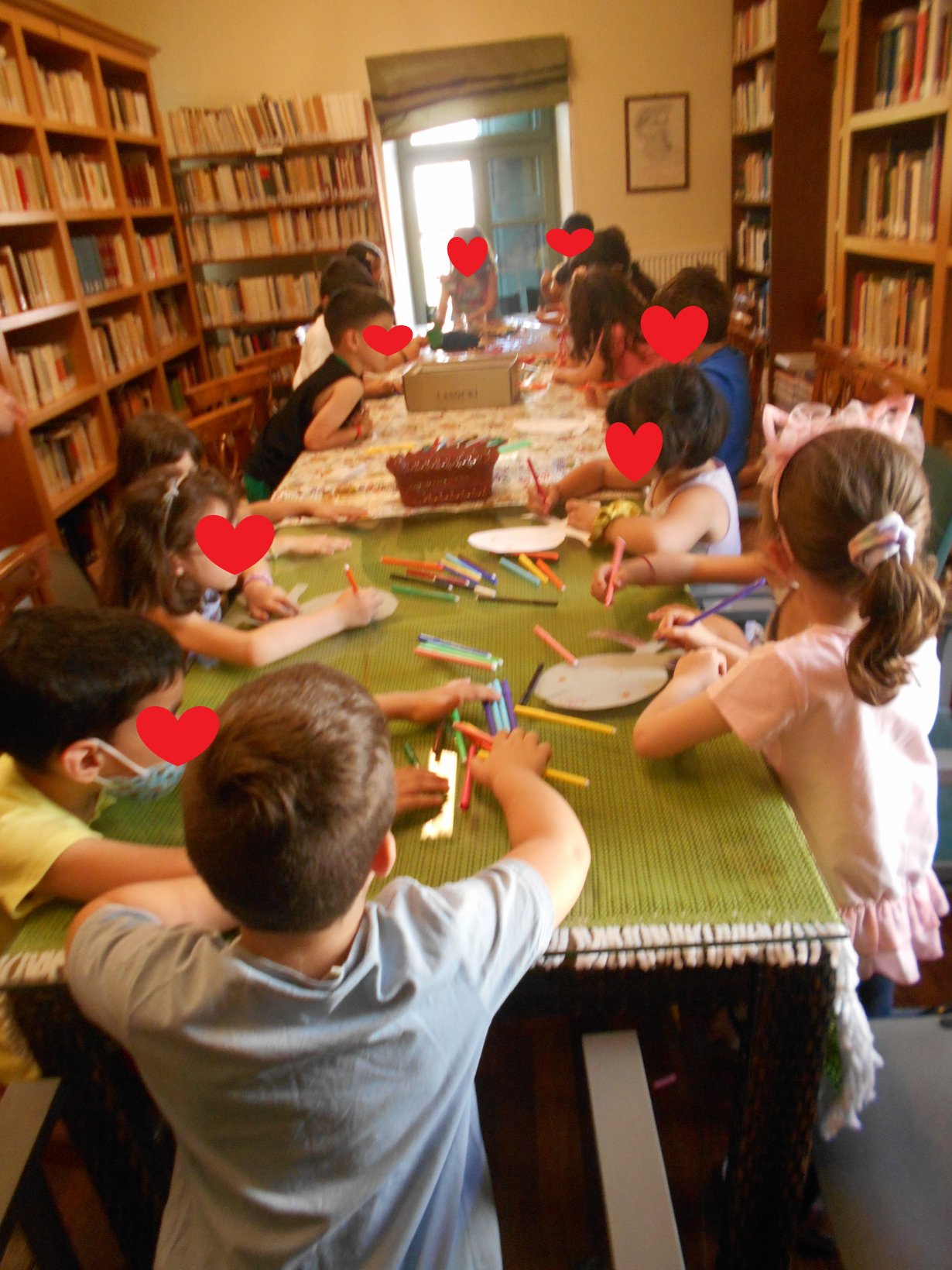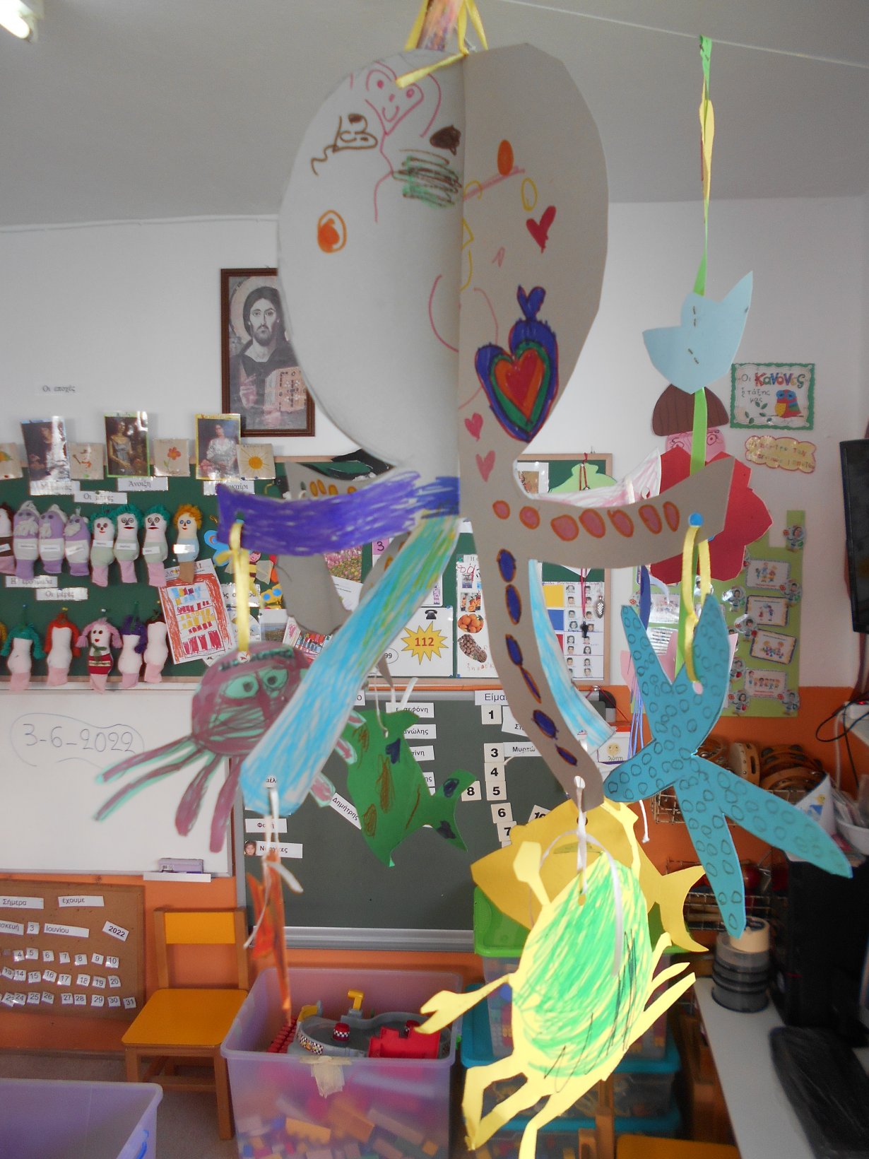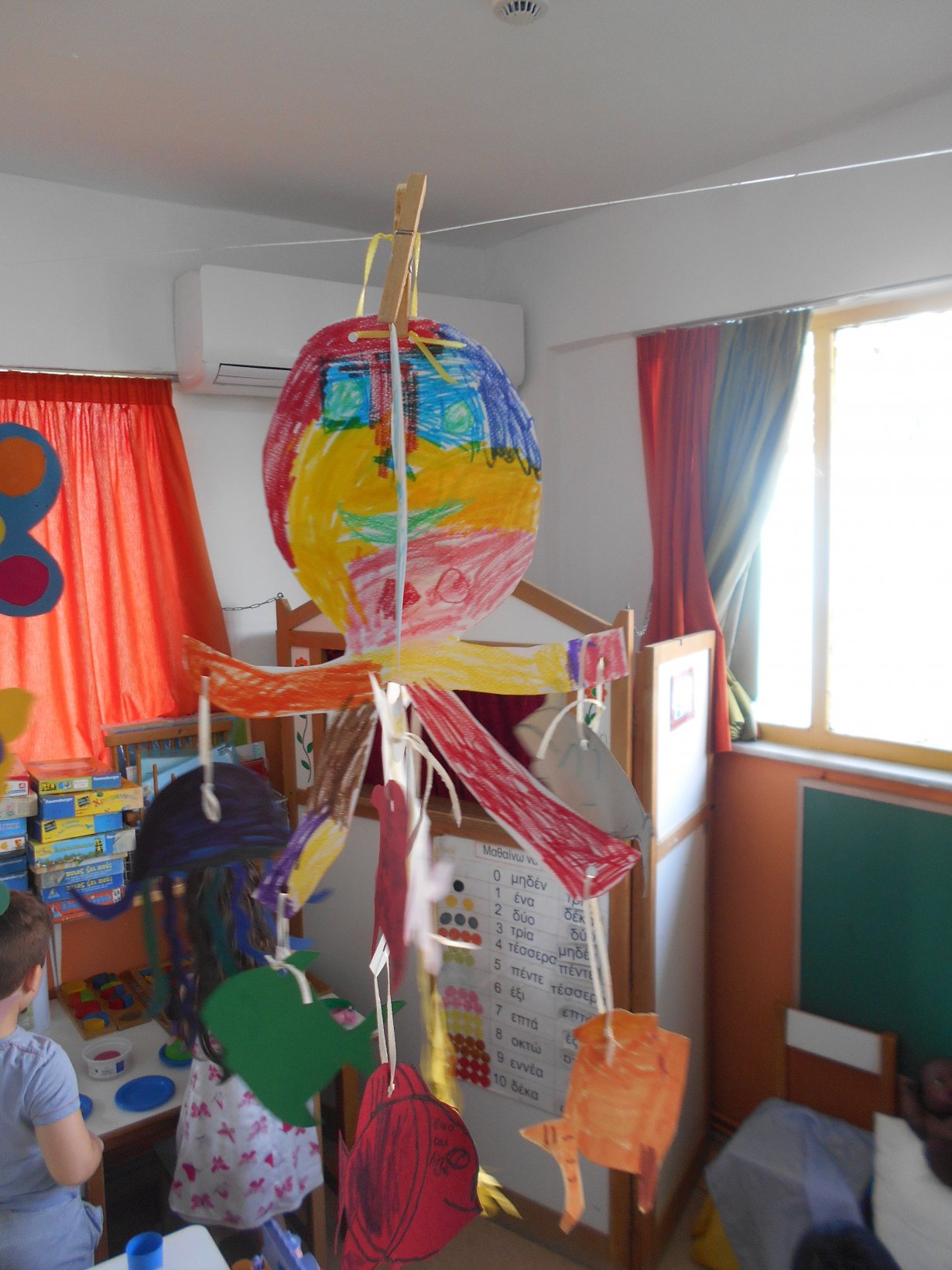 Τα παιδιά ενθουσιάστηκαν στο δωμάτιο με τα παιδικά βιβλία γιατί ένιωσαν την αυτονομία να ψάξουν και να επιλέξουν μόνα τους. Στα καλοκαιρινά Mobile που έφτιαξαν στην βιβλιοθήκη έγραψαν τους τίτλους αγαπημένων τους βιβλίων και στολίσαμε με “γνώση” την τάξη μας.