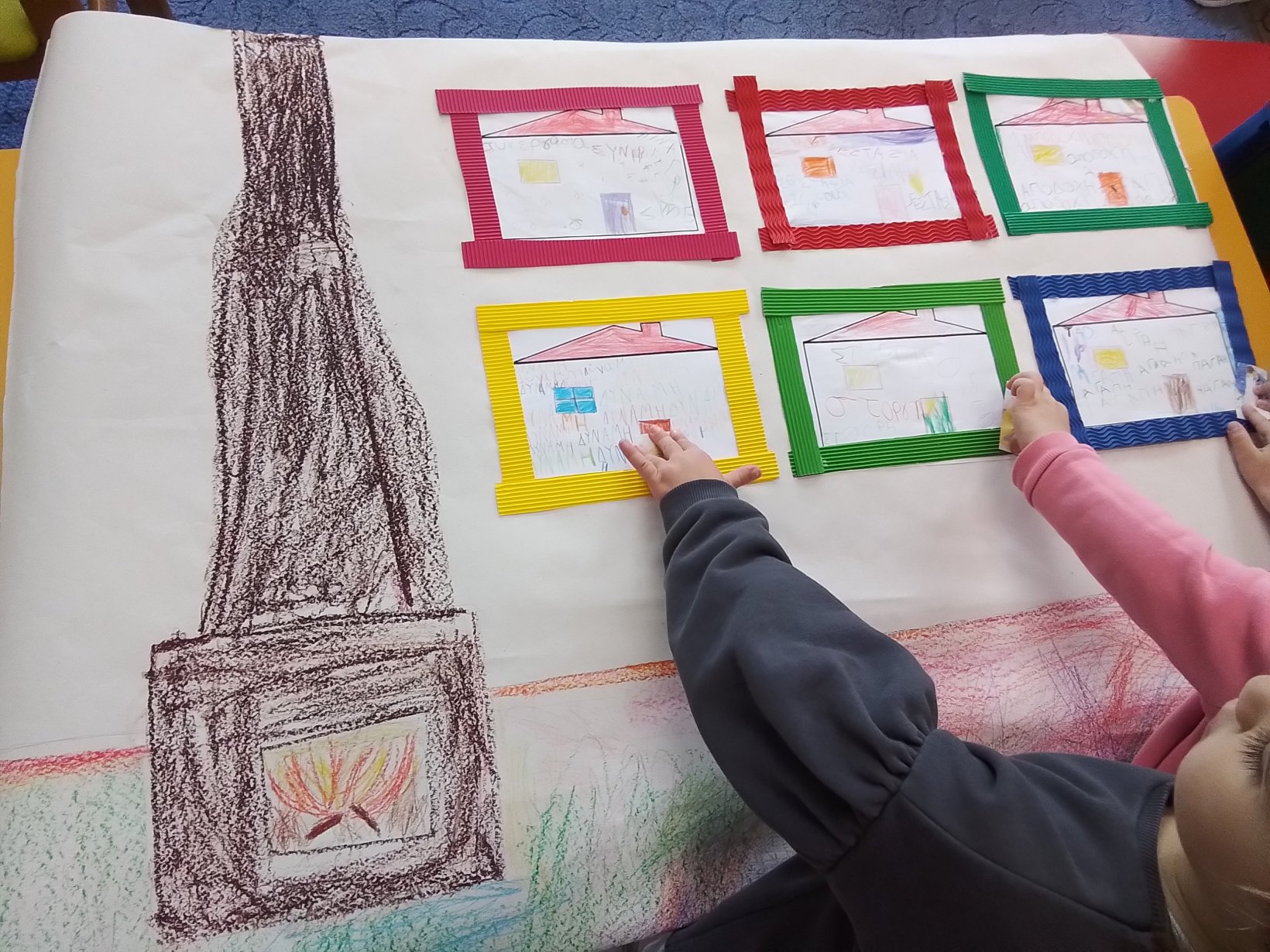 Δουλεύουν σε ομάδες και φτιάχνουν το σπίτι του Έλφι με τα τα δώρα που του χάρισαν τα ζωάκια .