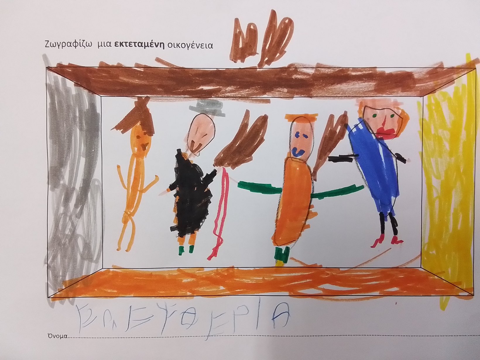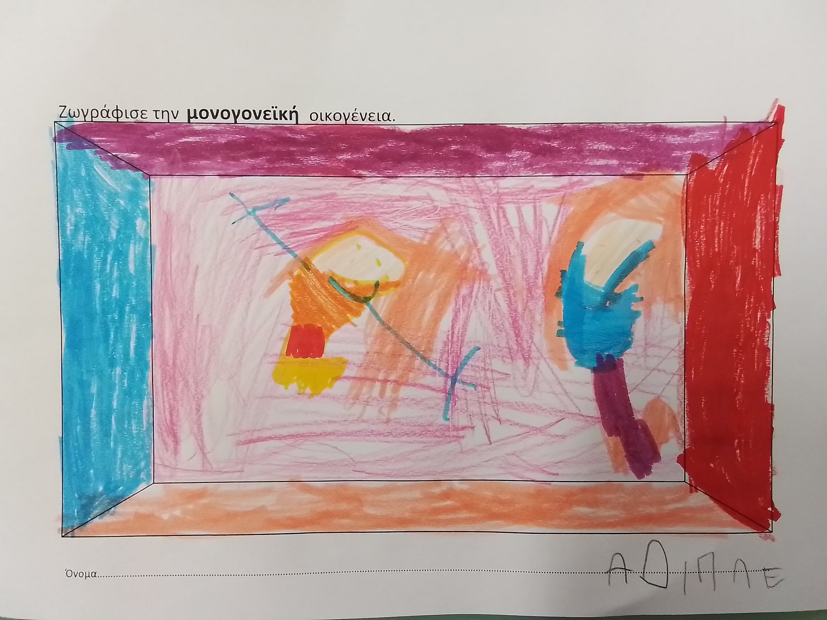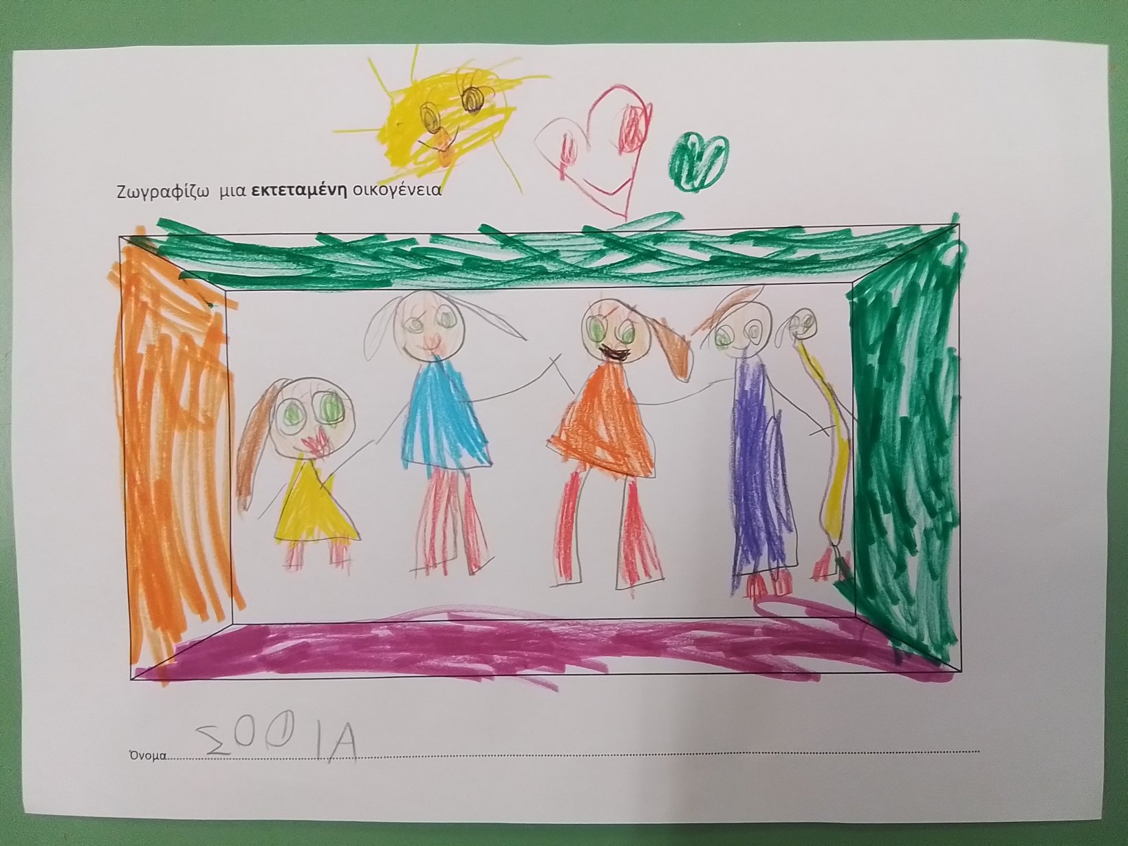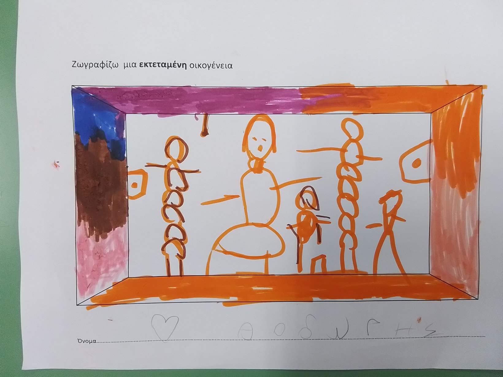 Η συζήτηση οδηγεί στον ορισμό της θετής οικογένειας και την οποία ζωγραφίζουν.