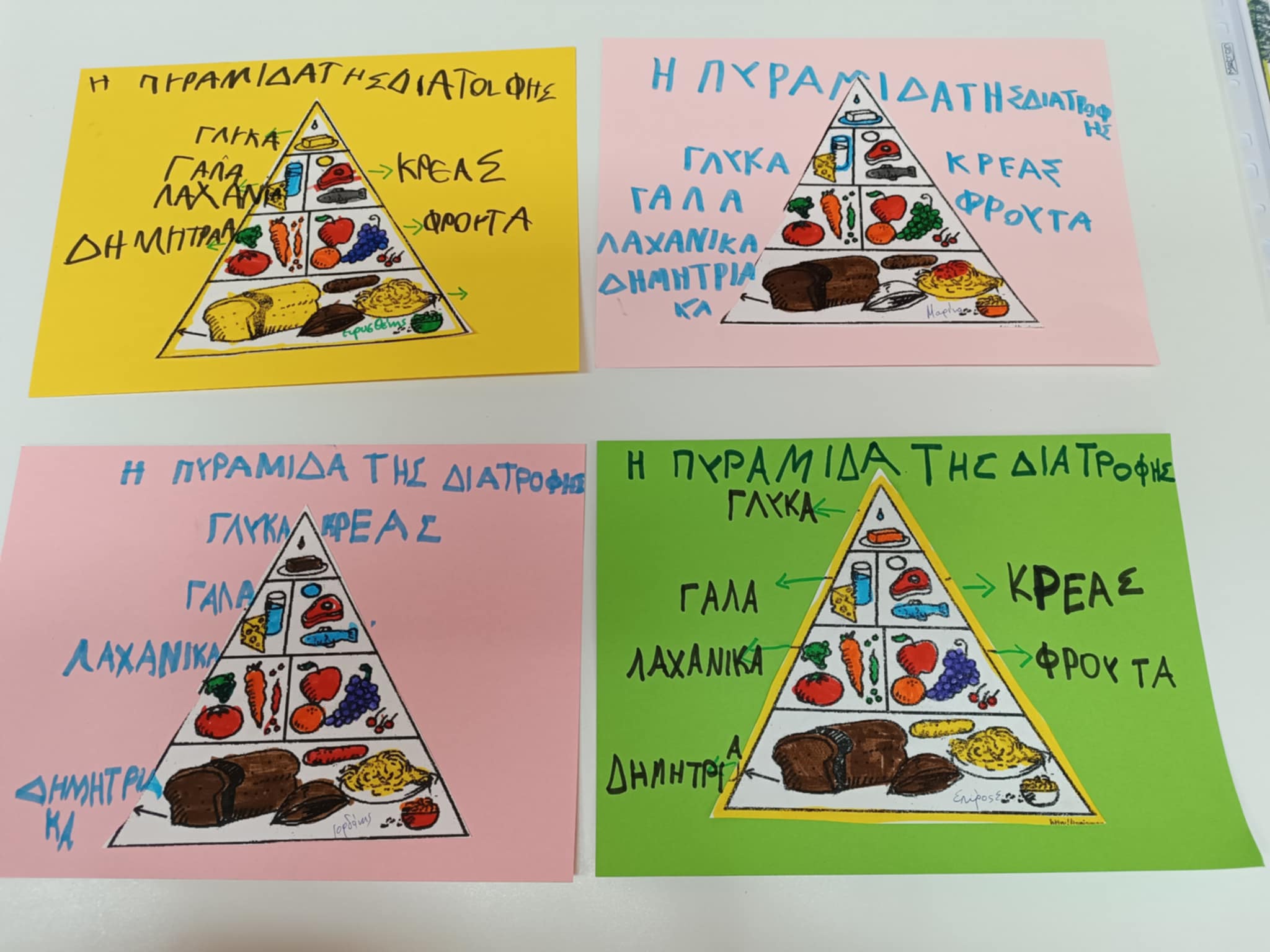 Μιλήσαμε για την Διατροφική πυραμίδα – Ομάδες τροφίμων και φτιάξαμε την δική μας πυραμίδα Διατροφής.