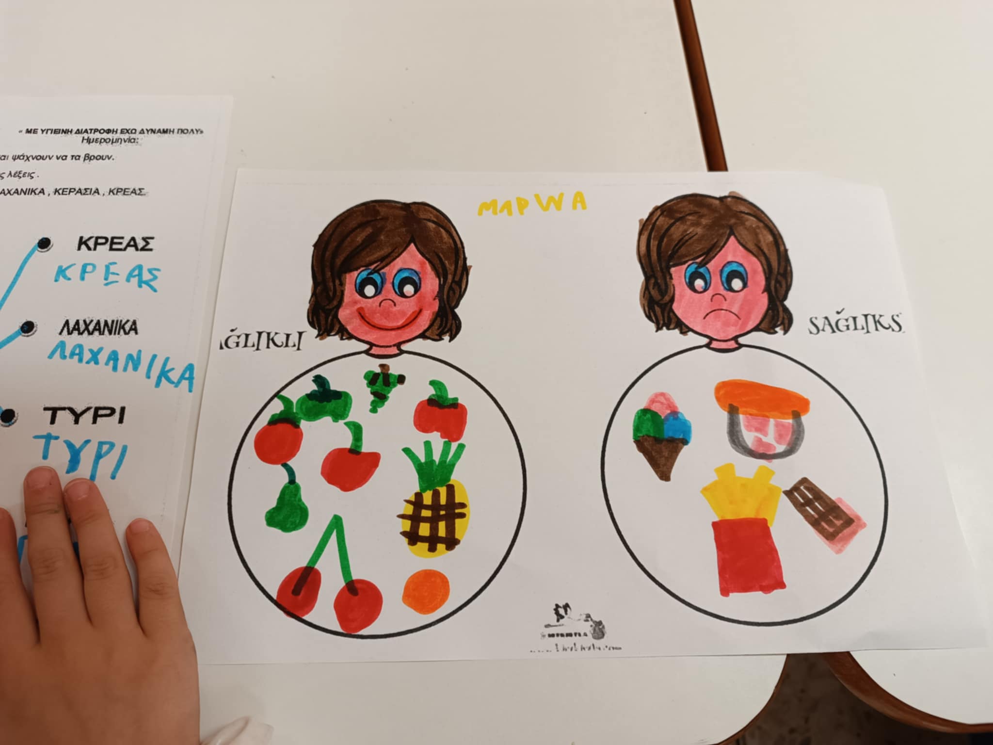 Κατασκευάσαμε «Το πιάτο της Υγιεινής Διατροφής», αλλά και το χεράκι με τα υγιεινά και ανθυγιεινά.