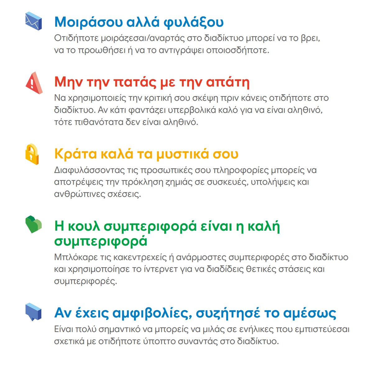 Αποδέχομαι τη διαφορετικότητα των φίλων μου. Σέβομαι και τις δικές του επιθυμίες και ανάγκες. Σέβομαι τον δικό τους τρόπο να εκφράζουν τα συναισθήματά τους και να κάνουν τις δικές τους επιλογές. Για να είναι φίλοι μου, κάποια στοιχεία τους με έφεραν κοντά τους. Αν έχω στο νου μου, γιατί επέλεξα να τους έχω στη ζωή μου, ποιος είναι τότε ο λόγος να προσπαθώ να τους επιβάλλω την άποψή μου ή να αγνοήσω τις ανάγκες τους επειδή δεν ταιριάζουν στις δικές μου;