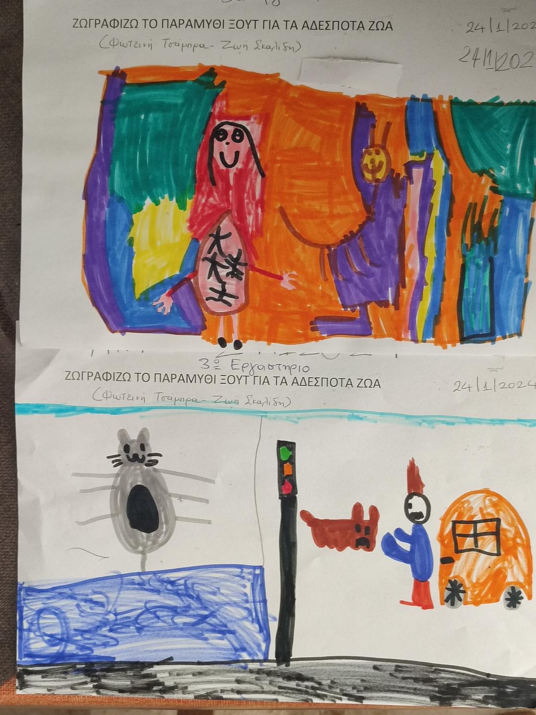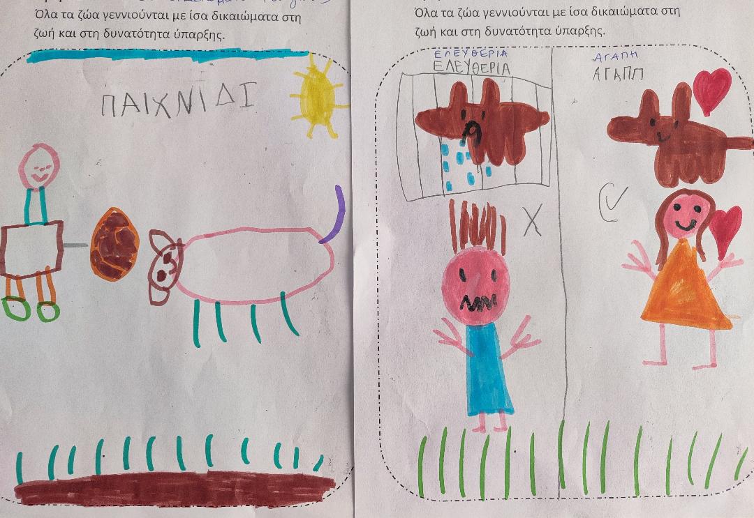 Διαβάζουμε τη διακήρυξη για τα δικαιώματα των ζώων και ακολουθεί συζήτηση. Τα παιδιά ζωγραφίζουν τα δικαιώματα των ζώων.