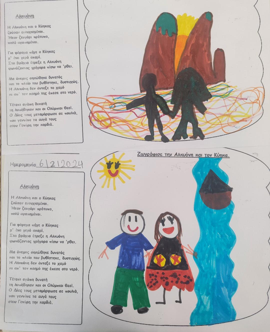 Τα παιδιά παρακολούθησαν ένα εκπαιδευτικό πρόγραμμα με αφορμή τους πίνακες μεγάλων ζωγράφων όπως ο Ιακωβίδης ,ο Γύζης και ο Λύτρας, με θέμα «Ψάξε να βρεις παιδάκια σαν κι εμένα». Είχαμε την ευκαιρία να έρθουμε σε επαφή με πίνακες ζωγραφικής των κορυφαίων ζωγράφων. Μέσα από την περιήγηση , γίναμε μικροί εξερευνητές και βρήκαμε τις λεπτομέρειες στους πίνακες, μάθαμε να παρατηρούμε και να ξεκλειδώνουμε τα μυστικά τους. Ακονίσαμε τη φαντασία μας, φτιάξαμε ιστορίες, ξεχωρίσαμε τα θέματα των έργων και παρατηρήσαμε κόλπα των ζωγράφων ,πήραμε έμπνευση για τις δικές μας ζωγραφιές. Προσπαθήσαμε να διακρίνουμε τις διαφορετικές τεχνικές και τους τρόπους δημιουργίας των έργων τέχνης και να κατανοήσουμε ένα μέρος της ιστορίας τους.