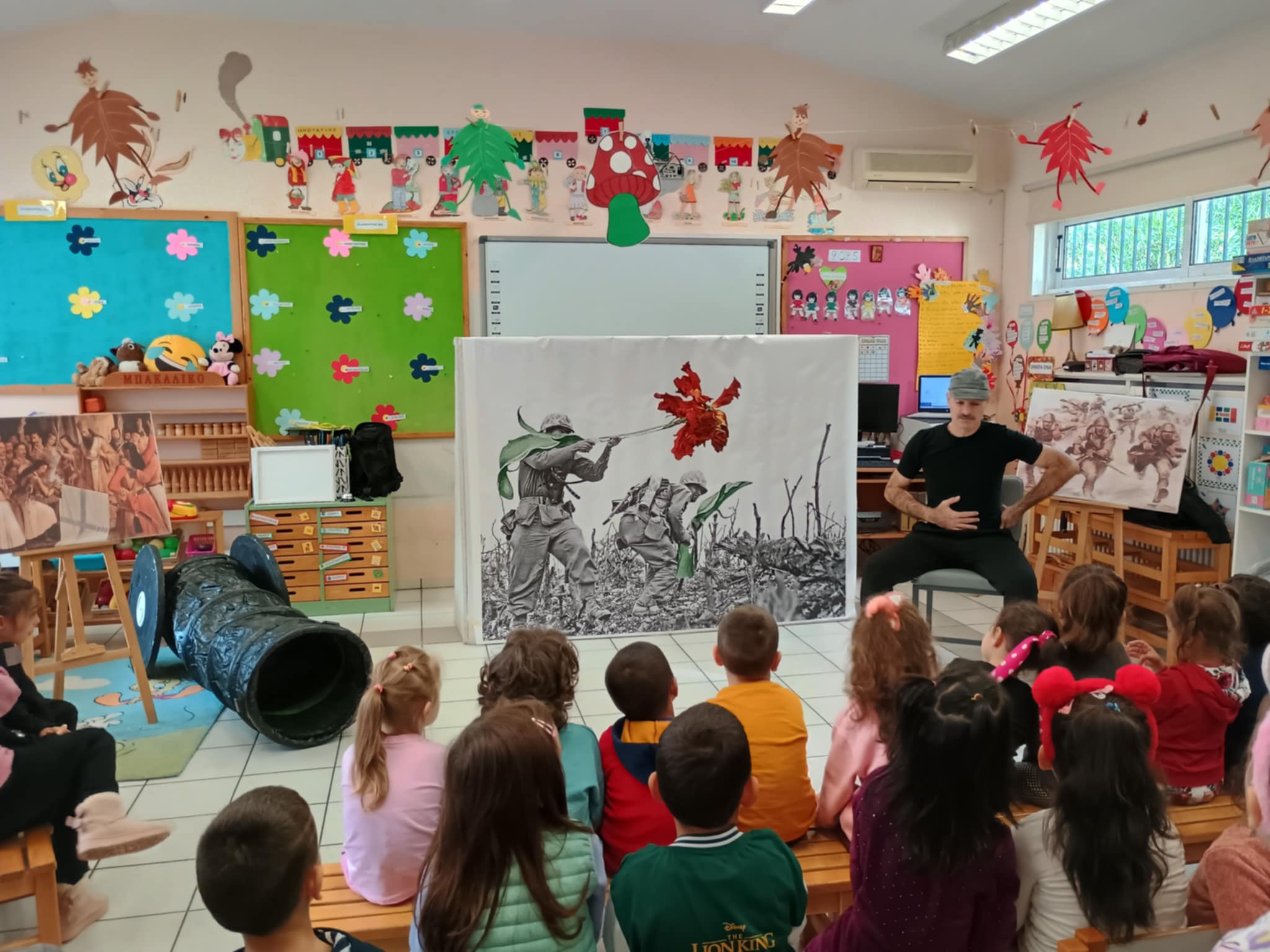 Η παράσταση “Το κανόνι της Ειρήνης” απο την ομάδα Καλειδοσκόπιο επισκέφθηκε το νηπιαγωγείο μας για να εξηγήσει στα παιδιά την αξία της ειρήνης.Τα παιδιά παρακολούθησαν την παράσταση συμμετέχοντας και τα ίδια ενεργά, με την επίλυση γρίφων, συζήτηση και επεξήγηση εικόνων πολέμου και ειρήνης και πολύ χορό και τραγούδι.