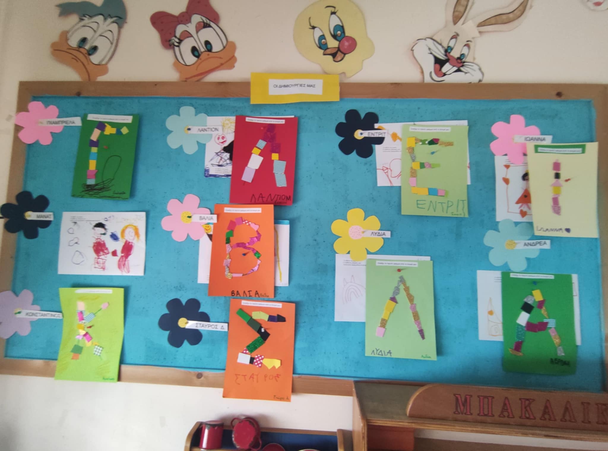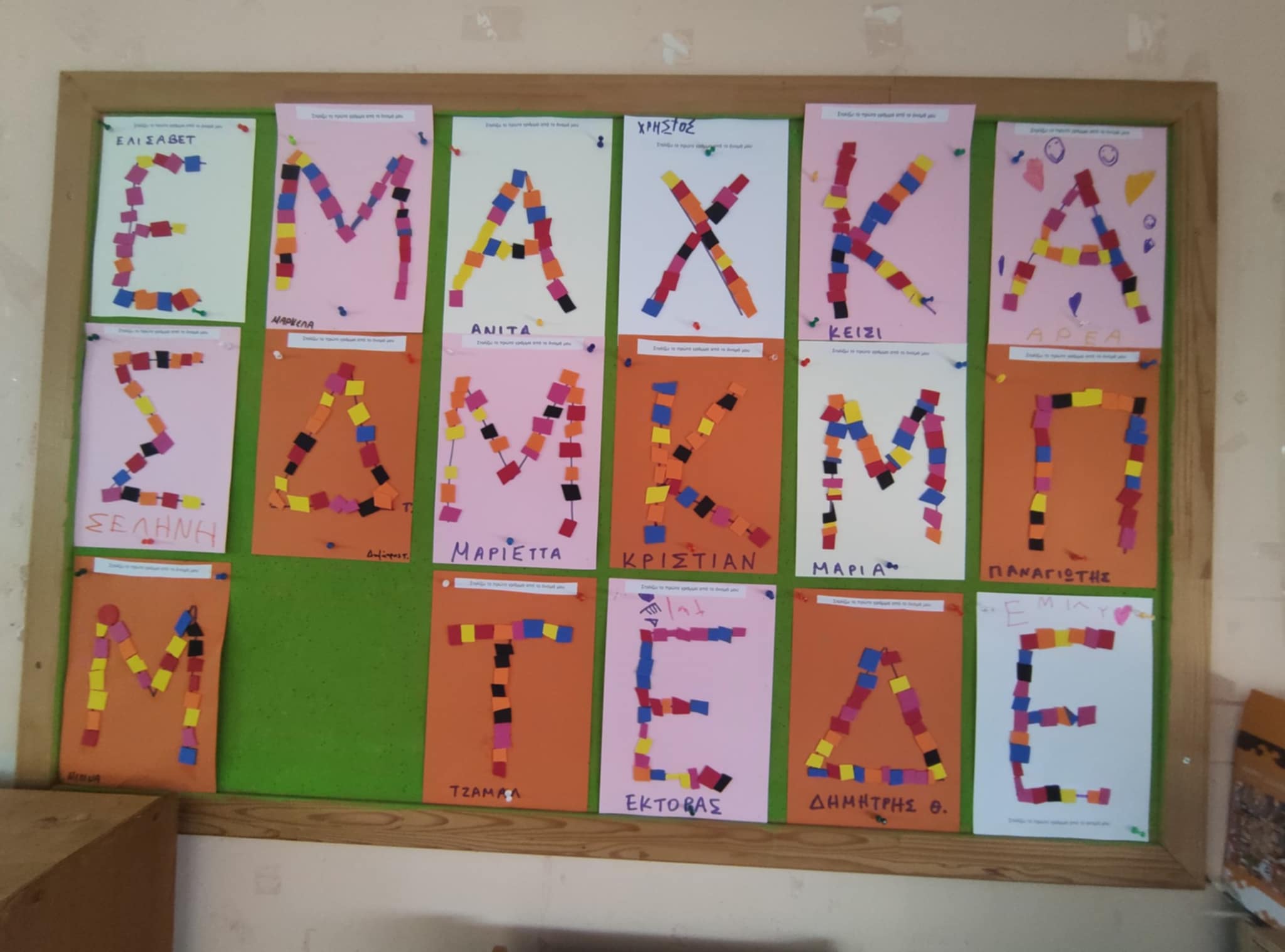 - Τέλος σχηματίσαμε το αρχικό γράμμα του ονόματός μας χρησιμοποιώντας χάρτινες πολύχρωμες ψηφίδες
