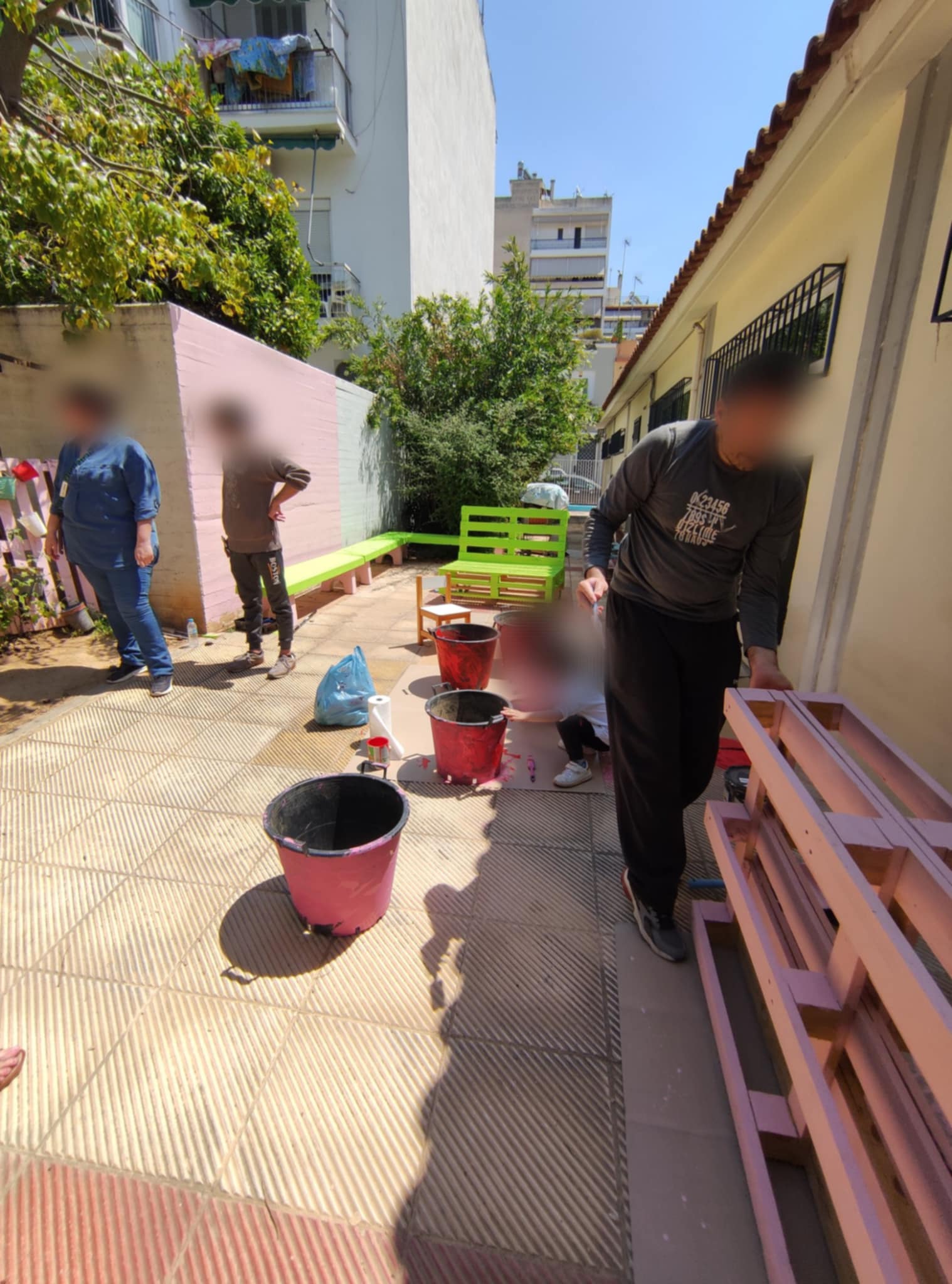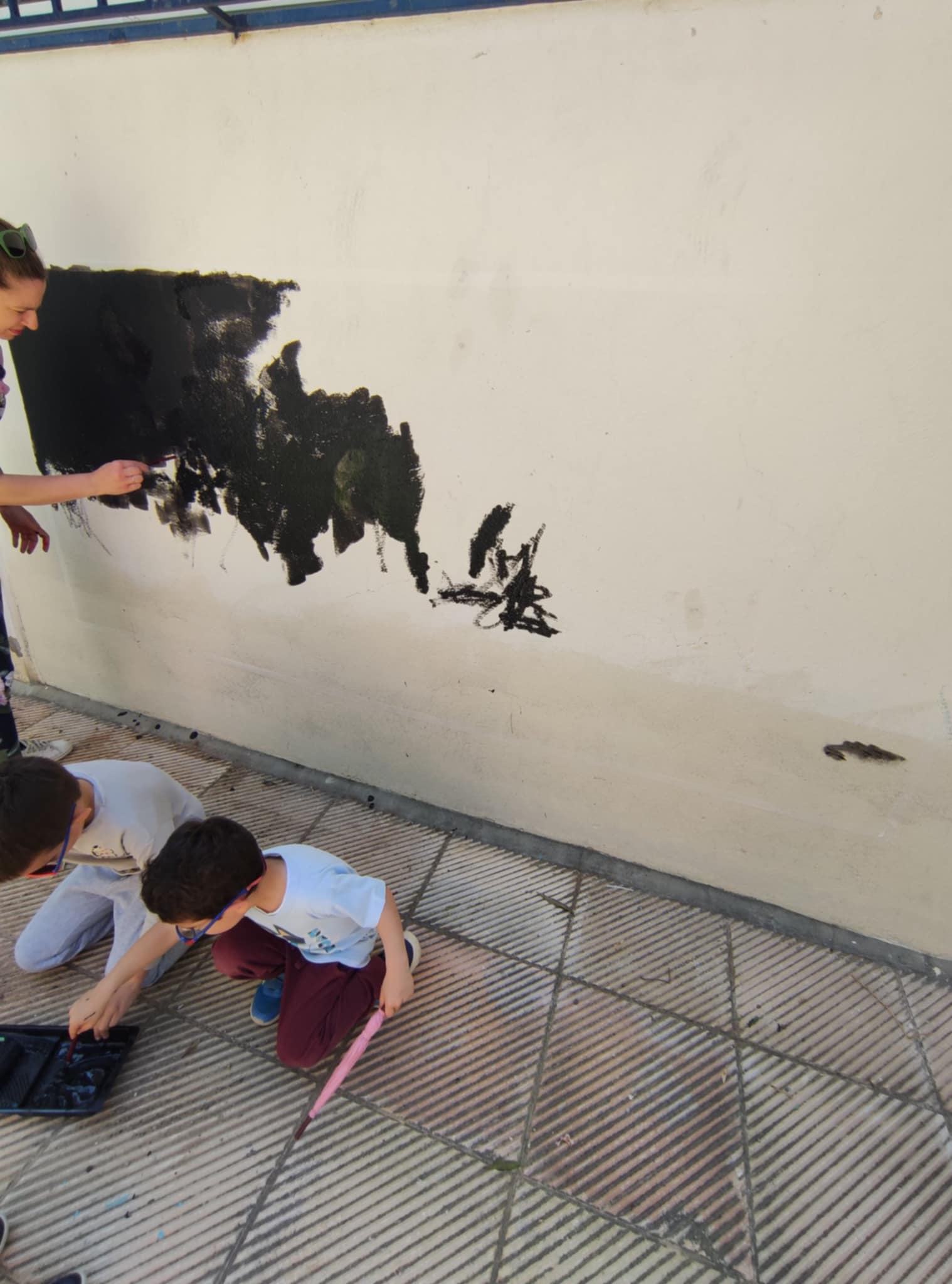 Γονείς επίσης έβαψαν περιμετρικά τα τοιχία του φράχτη