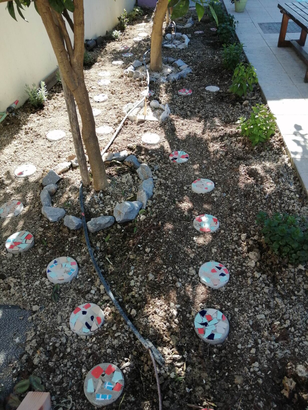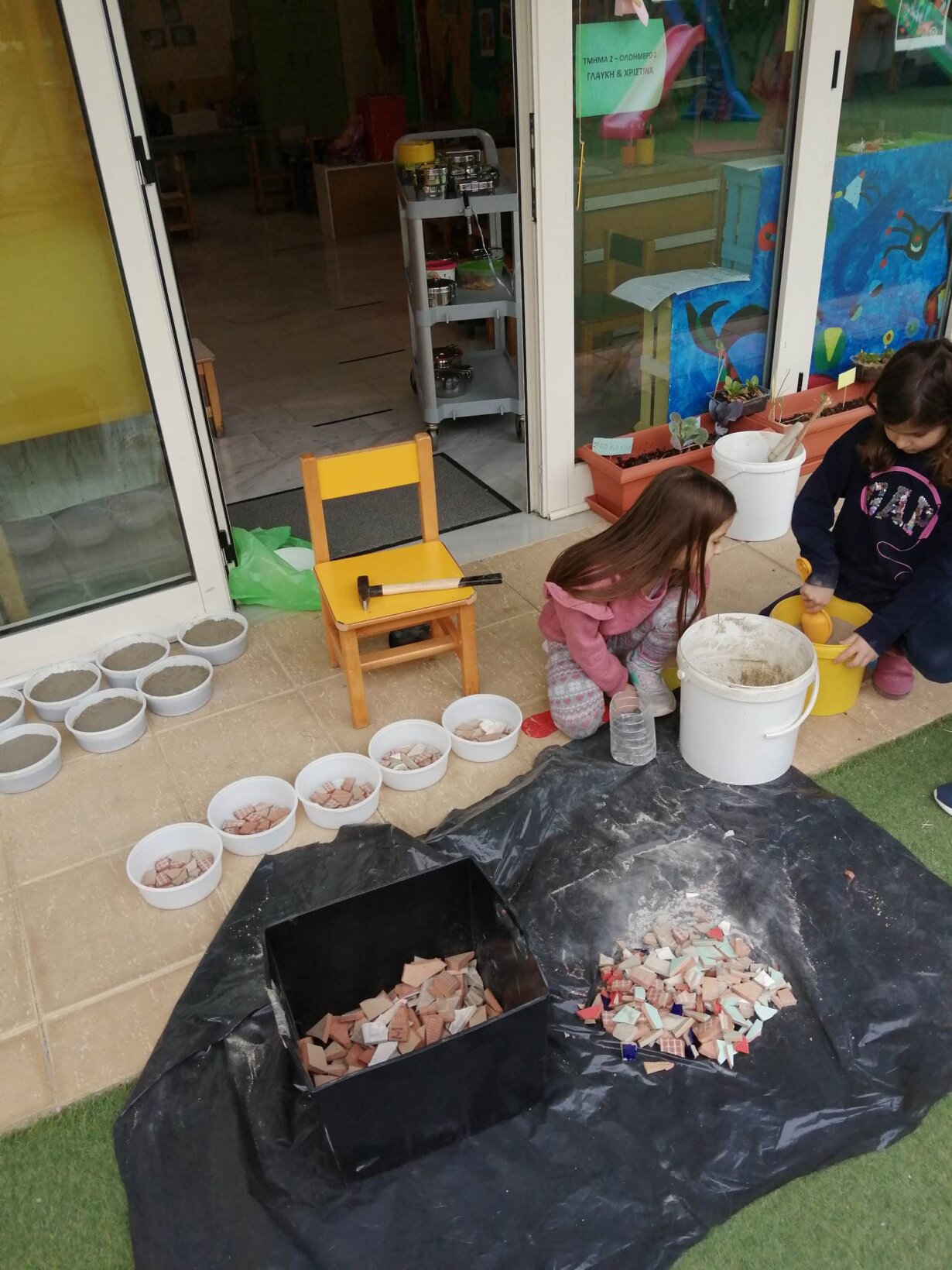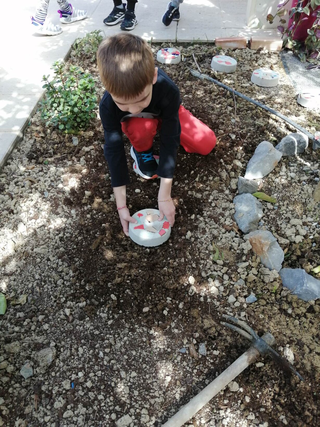 Ο κήπος μας πήρε την τελική του μορφή! Τα παιδιά μαζί με τις εκπαιδευτικούς και τη βοήθεια κάποιων γονέων , σχεδίασαν, κατασκεύασαν, έβαψαν τους χώρους – γλάστρες που θα φιλοξενήσουν κάθε λογής βότανα και μερικά λουλούδια.