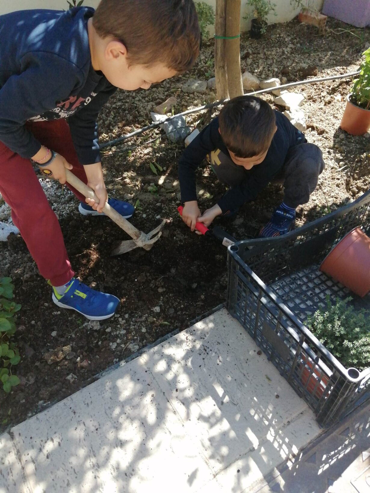 Έτσι φυτέψαμε ρίγανη, βασιλικό, σιτρονελα, φασκόμηλο, αμπεροσα και πολλά άλλα. Στην πορεία, θα χρησιμοποιήσουμε τα λαχανικά που φυτέψαμε το χειμώνα και τα βότανα, θα μαγειρέψουμε συνταγές στο σχολείο και θα τις δοκιμάσουμε.