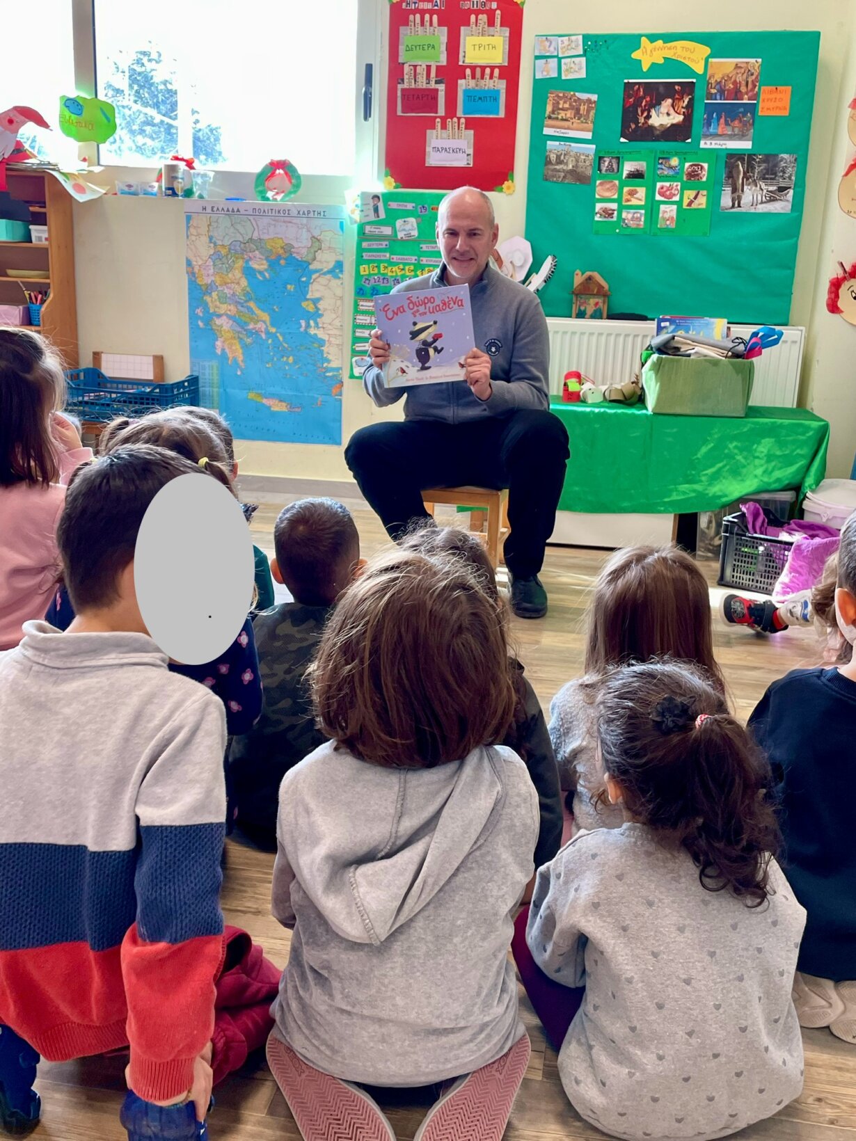 Τέλος τα παιδιά είχαν την ευκαιρία να ακούσουν ένα χριστουγεννιάτικο παραμύθι από τον κ. Παντελή Καλλιμάνη