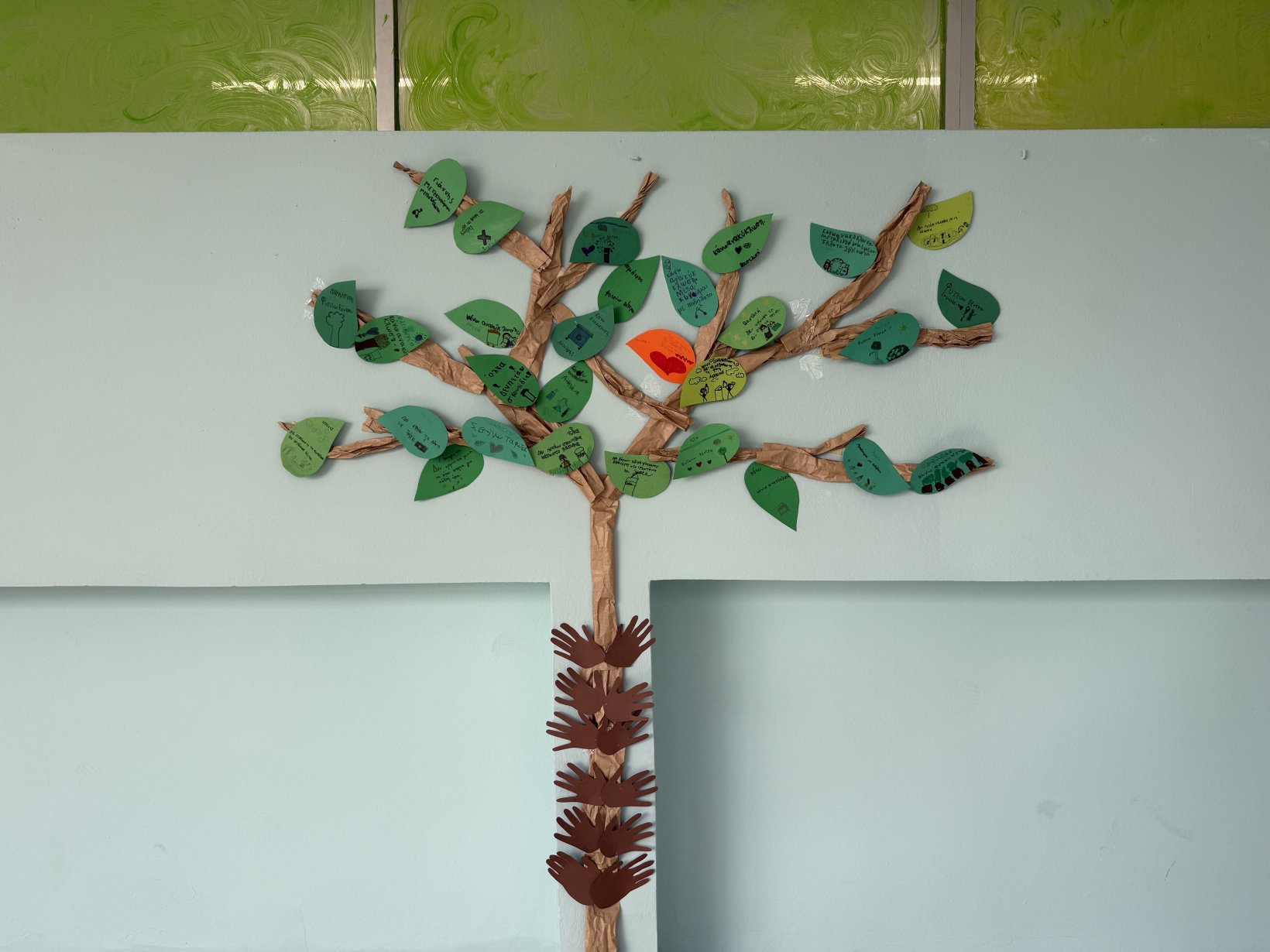 Στα πλαίσια των Εργαστηρίων Δεξιοτήτων με θέμα: ”Φροντίζω το Περιβάλλον”, η Α’ και η Β’ Τάξη του Δημοτικού συνεργάστηκαν και δημιούργησαν το ”Δέντρο των Μικρών Οικολόγων”, προτείνοντας τρόπους αντιμετώπισης της κλιματικής αλλαγής και τη δημιουργία μίας πιο υγιούς κοινωνίας.