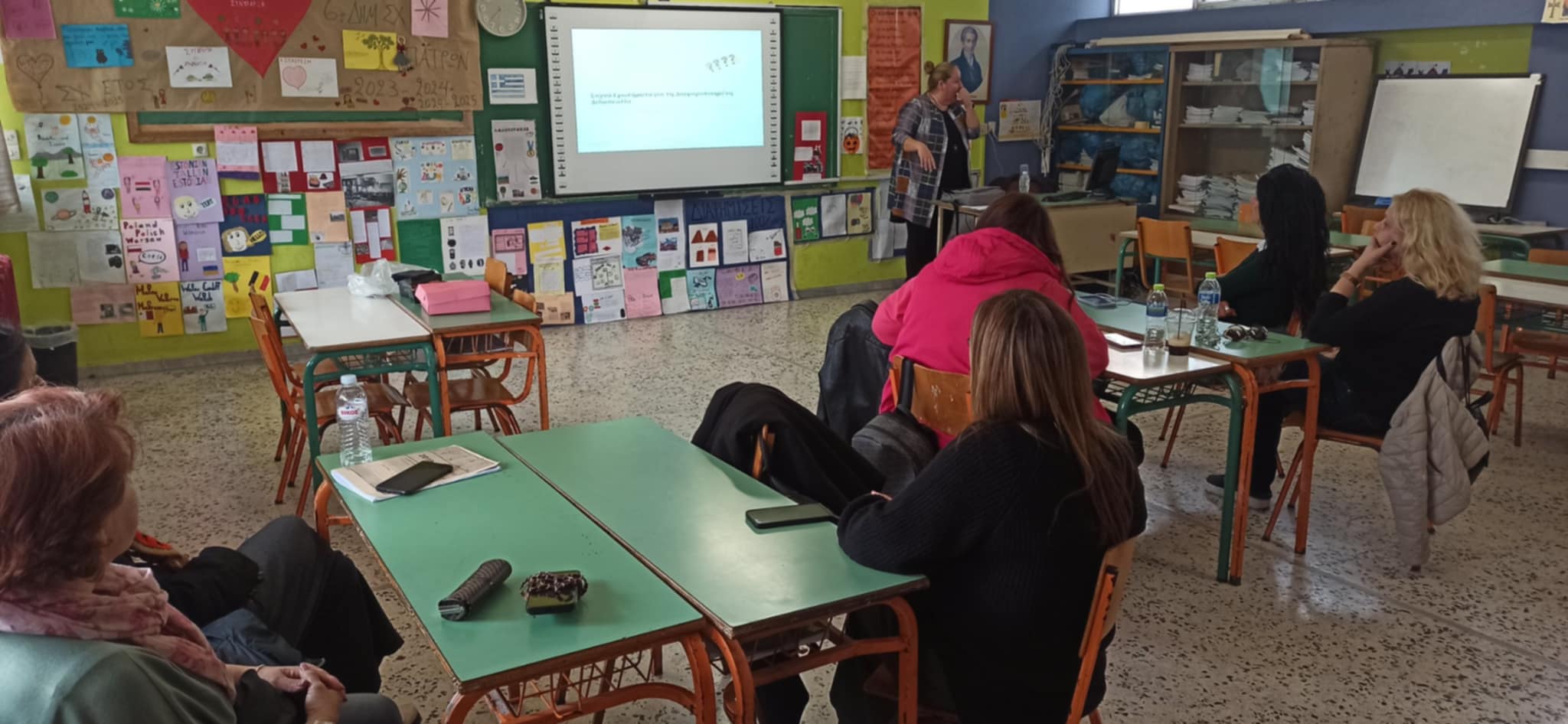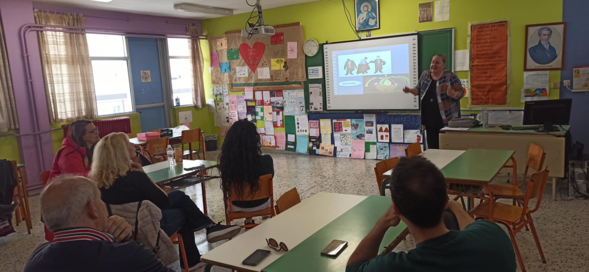 Την Πέμπτη 27 Μαρτίου 2025, η ΣΤ΄ τάξη του σχολείου μας μαζί με τον δάσκαλό της, Λέκκα Κωνσταντίνο, είχε τη χαρά και την τιμή να υποδεχθεί στην αίθουσα διδασκαλίας, την κα. Ειρήνη Ανδρικοπούλου, η οποία είναι φιλόλογος και διερμηνέας της Ελληνικής Νοηματικής Γλώσσας. Στη διάρκεια μίας διδακτικής ώρας οι μαθητές/-τριες ήρθαν σε επαφή με έργα τέχνης που έχουν δημιουργήσει Κωφοί απ’ όλον τον κόσμο, με στόχο την ενεργοποίησή τους στη συζήτηση που εγείρεται σχετικά με τη Νοηματική Γλώσσα και πώς αυτή αποτελεί τον πυρήνα στη ζωή της Κοινότητας των Κωφών. Για μία περίοδο πολλών ετών (1880-1960) οι Κωφοί είχαν αποκλειστεί από την εκπαίδευση και η Νοηματική Γλώσσα, η φυσική γλώσσα των Κωφών, είχε απαγορευτεί στα σχολεία τους, με οδυνηρά και ολέθρια αποτελέσματα στη μόρφωσή τους. Η αντίδραση των Κωφών ήρθε μέσα από την Τέχνη, ήταν εικαστικές δημιουργίες γεμάτες χέρια, έννοιες, Νοήματα και έντονα χρώματα. Η διαμαρτυρία τους έγινε γνωστή παντού στον κόσμο με τον όρο “Deaf Art”. Αποτελεί μια μορφή τέχνης που συνεχίζεται μέχρι και σήμερα τόσο με αποτύπωση σε εικαστικά έργα της καταπίεσης και των απαγορεύσεων που βίωσαν οι Κωφοί από ακούοντες που τους επέβαλλαν την προφορική εκπαίδευση και επικοινωνία, όσο και με οπτική ποίηση (ποίηση των Κωφών). Η συζήτηση με τους μαθητές ξεκίνησε με τις εμπειρίες των ίδιων των μαθητών και με αφόρμηση την προβολή ενός βίντεο, οι μαθητές κλήθηκαν χωρισμένοι σε ομάδες, να συμπληρώσουν ένα διπλό φύλλο εργασίας, το οποίο είχε δύο στοχευμένες δραστηριότητες. Στην πρώτη, οι μαθητές έπρεπε να καταγράψουν το κοινό στοιχείο που είχαν τα εικαστικά έργα (ζωγραφικής, κεραμικά, κ.α.) και στη δεύτερη, να αποτυπώσουν τις εντυπώσεις τους με ποικίλους τρόπους: ζωγραφιά, σκίτσο, στιχάκι, ποίημα, κειμενάκι κ.α.