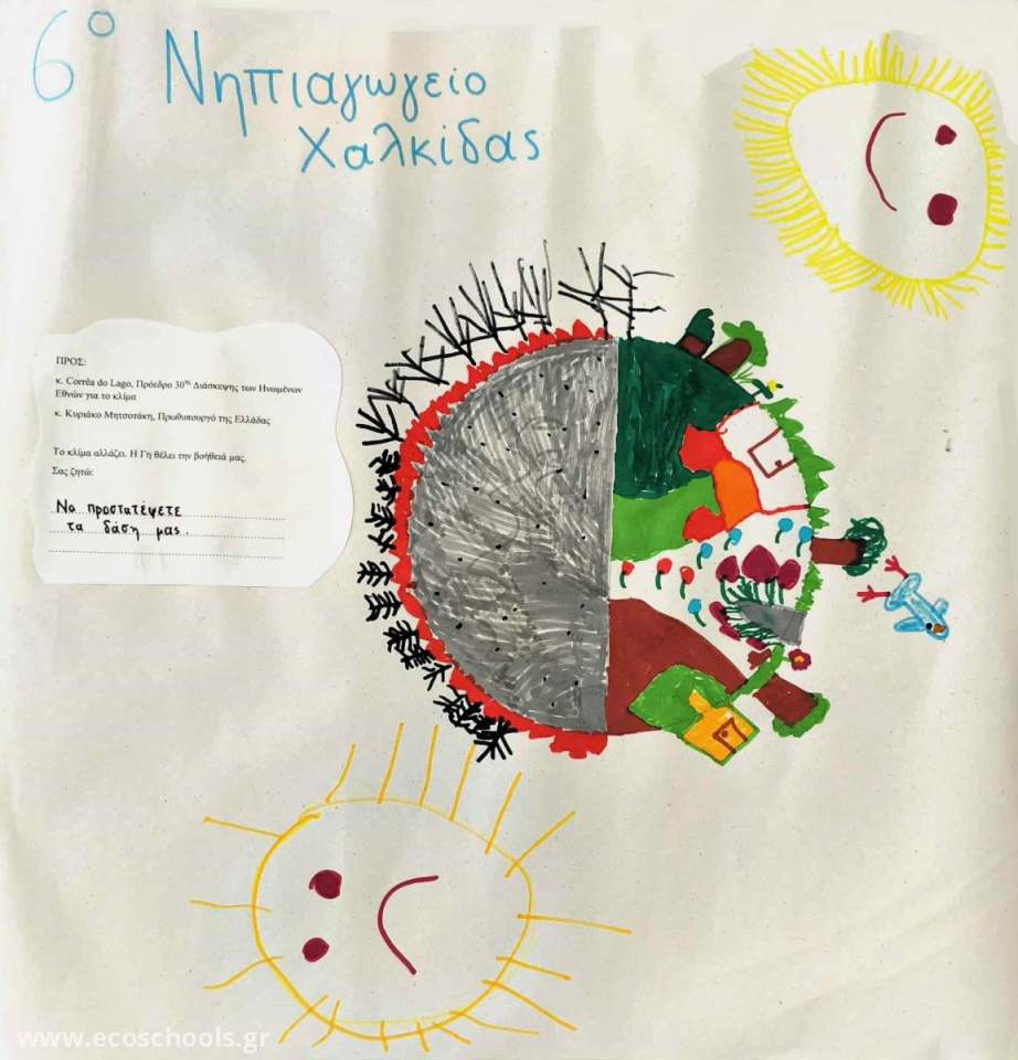 Σε λίγες μέρες, οι παγκόσμιοι ηγέτες συναντιούνται στη Βραζιλία για την COP30 – τη 30ή Διεθνή Διάσκεψη του ΟΗΕ για την Κλιματική Κρίση (10–21 Νοεμβρίου 2025).Οι μαθητές του 6ου Νηπιαγωγείου Χαλκίδας διεκδικούν έναν πλανήτη υγιή και βιώσιμο! Τα παιδιά του Ολοήμερου Τμήματος ενώνουν τη φωνή τους με μαθητές απ’ όλη την Ελλάδα για να στείλουν ένα δυνατό μήνυμα: «Προστατέψτε τα δάση, προστατέψτε τον πλανήτη μας!» Μέσα από μια ομαδική αφίσα–επιστολή προς τον Πρωθυπουργό και τους παγκόσμιους ηγέτες, τα παιδιά εκφράζουν την αγωνία και την αγάπη τους για τη φύση.