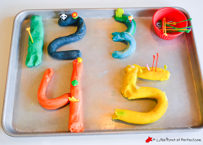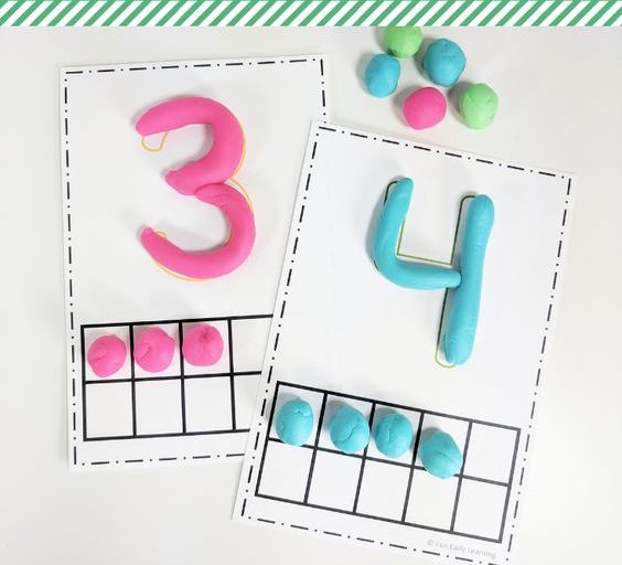 2) Φτιάχνουμε με πλαστελίνη ή με το ζυμαράκι μας τους αριθμούς και κάτω από τον κάθε αριθμό φτιάχνουμε τόσα μπαλάκια όσα μας λέει ο αριθμός. Μπορούμε να ανακατέψουμε τους αριθμούς και να βρούμε πάλι τη σωστή θέση τους.
