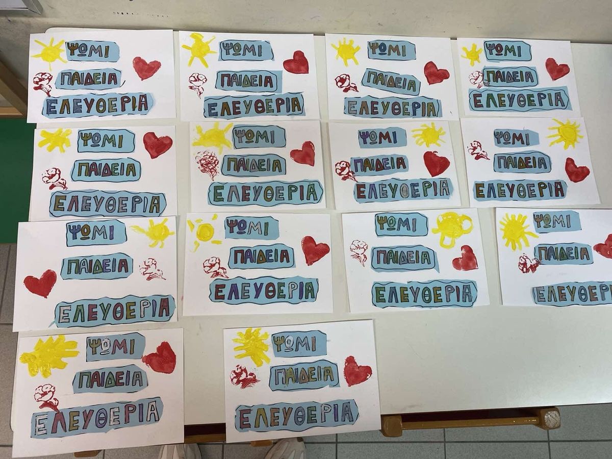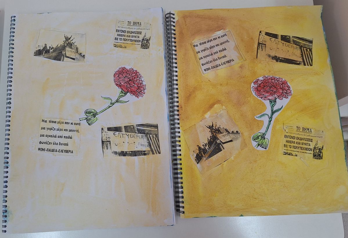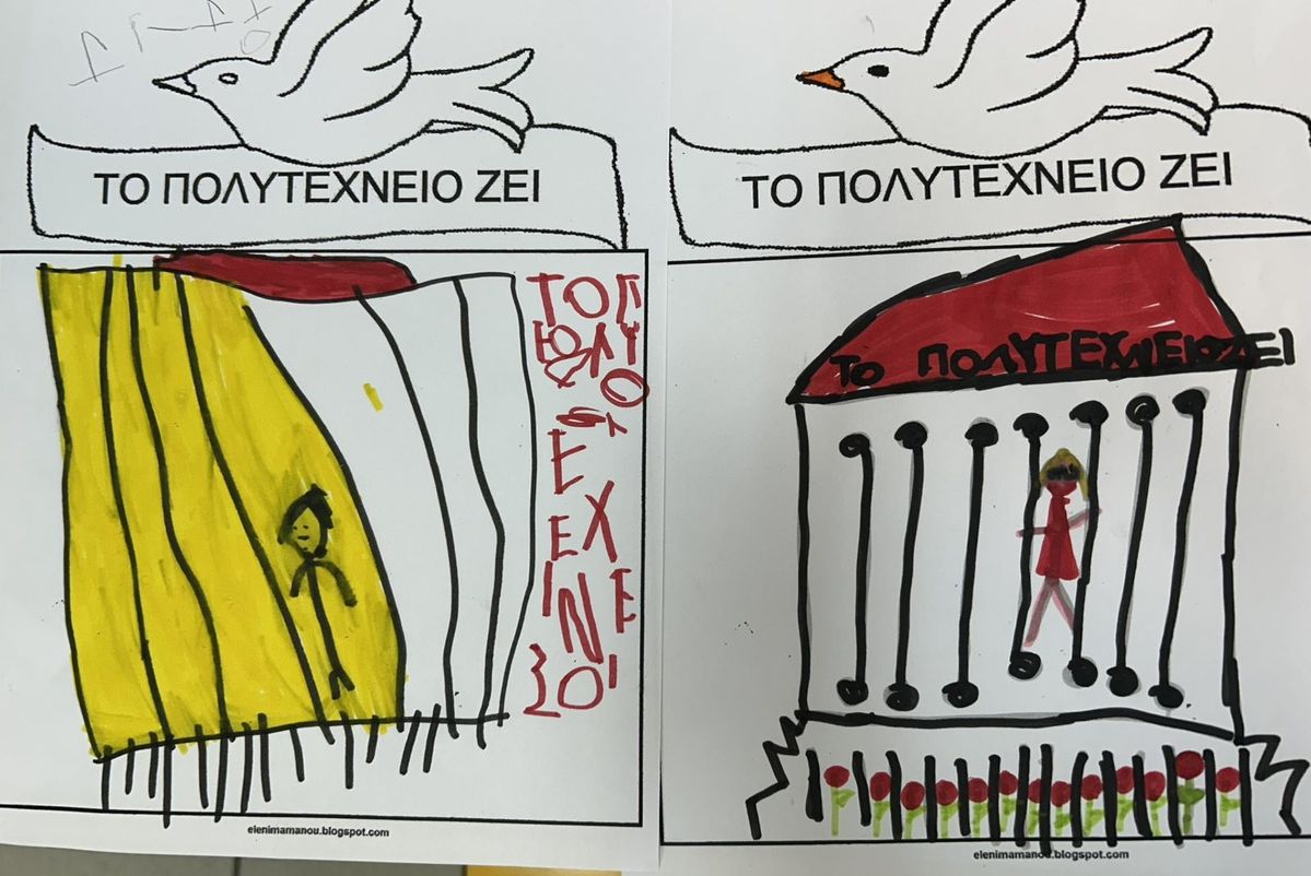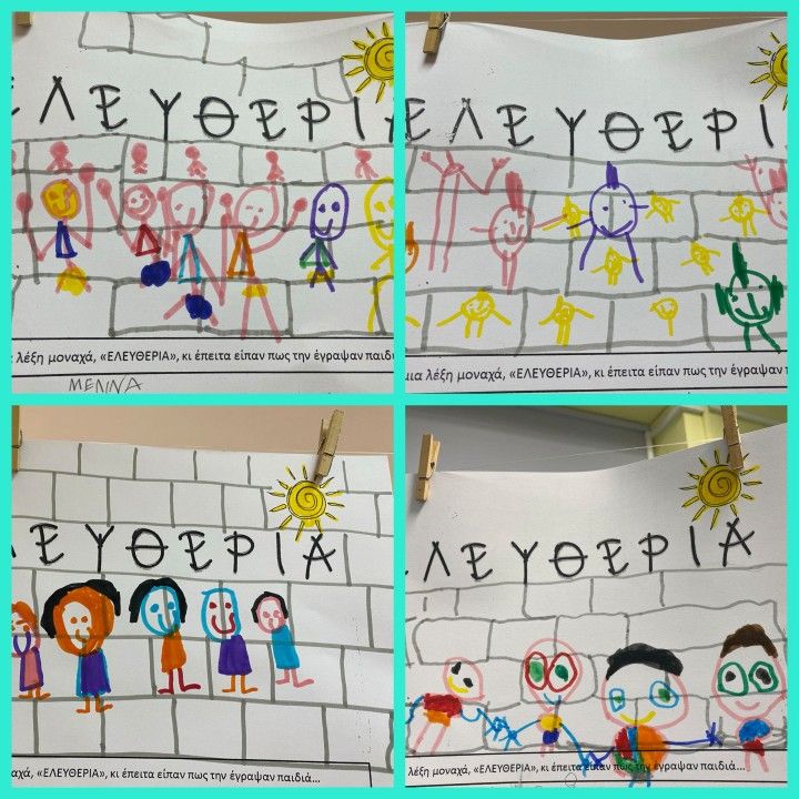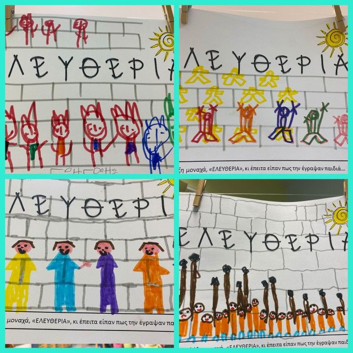 Προσεγγίσαμε την επέτειο της εξέγερσης του Πολυτεχνείου μέσα από πλούσιο εποπτικό υλικό, ανάγνωση σχετικών παραμυθιών, εκμάθηση τραγουδιών και διάφορων εργασιών και κατασκευών. Τα παιδιά ήρθαν σε επαφή με τις έννοιες της δικτατορίας και της δημοκρατίας και δούλεψαν τόσο ατομικά όσο και ομαδικά.