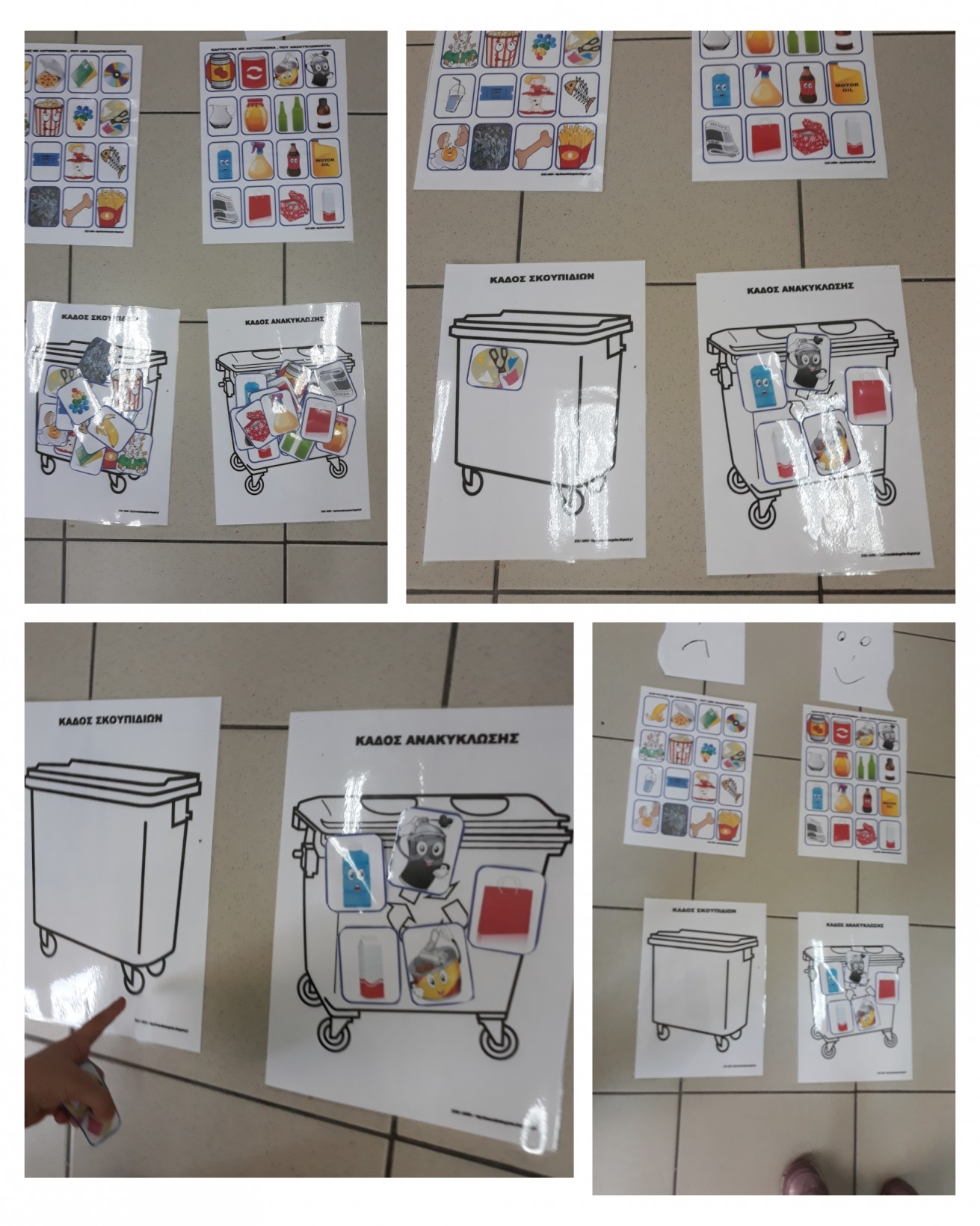 Μάθαμε τις συσκευασίες που μπορούν να ανακυκλωθούν . Τις χωρίσαμε σε κατηγορίες (χαρτί, αλουμίνιο, πλαστικό, λευκοσίδηρος ) και παίξαμε παιχνίδια.