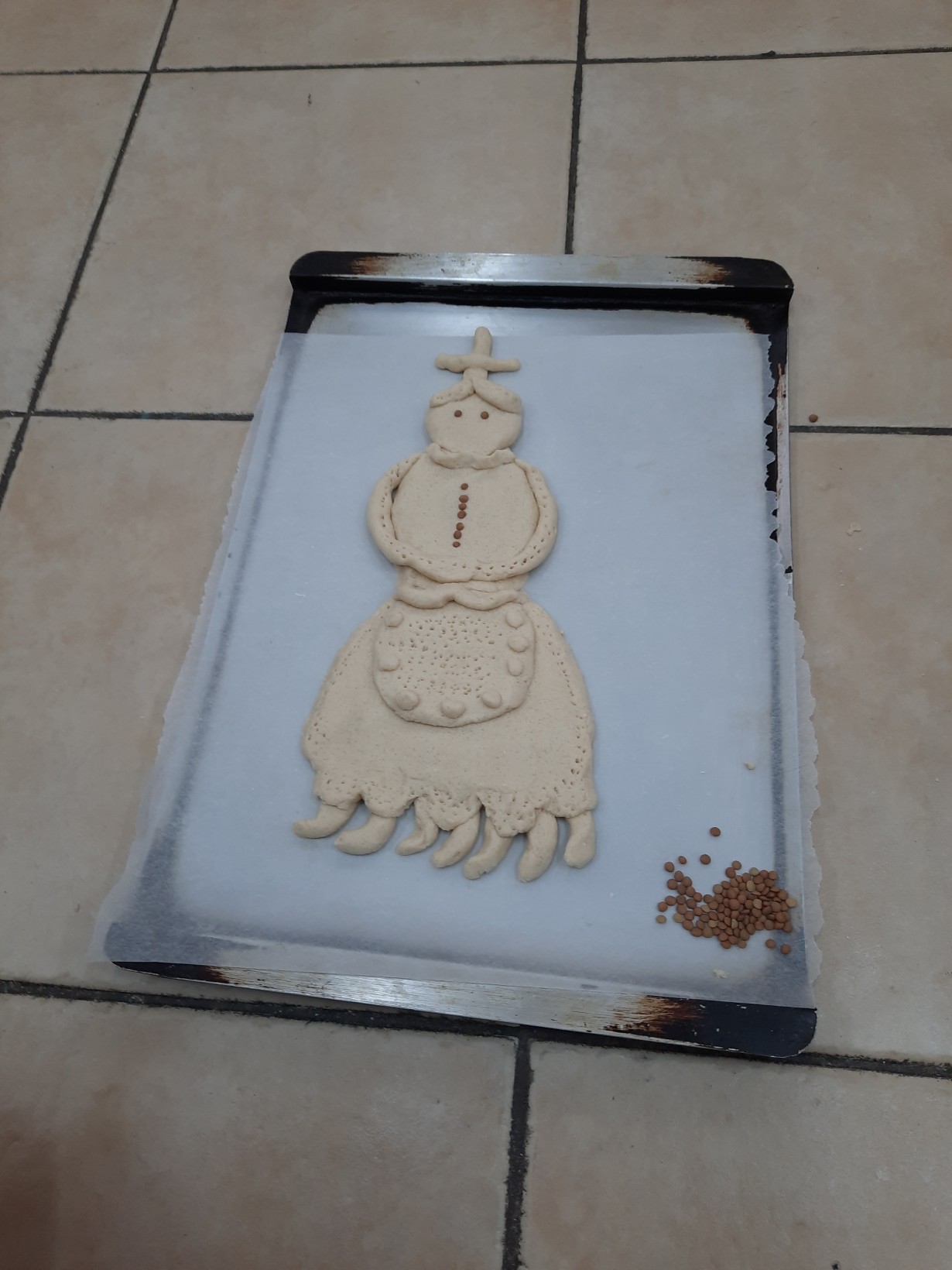 Εκτός από χαρτί, σε πολλά άλλα μέρη της Ελλάδας έφτιαχναν την Κυρά Σαρακοστή από ζυμάρι, με αλεύρι, αλάτι και νερό.