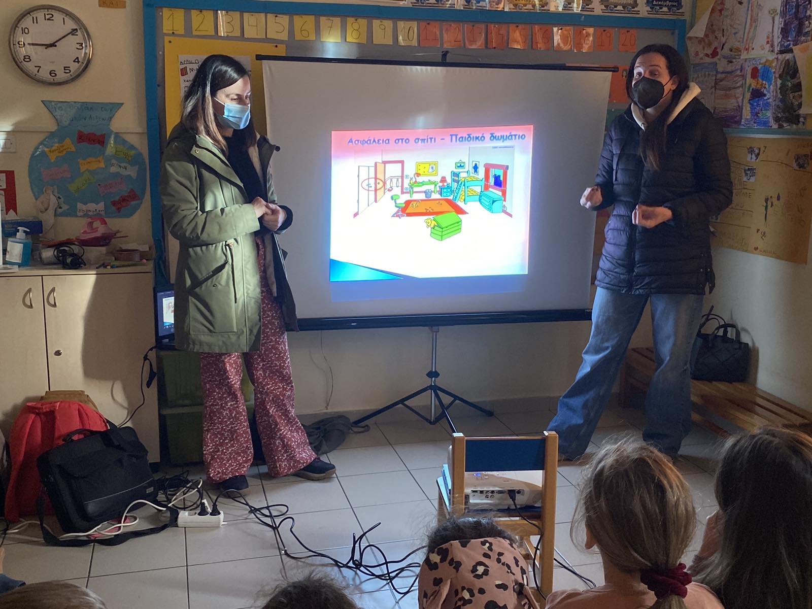 Οι εκπαιδευτές παρουσίασαν στα παιδιά και συζήτησαν μαζί τους τρόπους αποφυγής ατυχημάτων στο σπίτι και το σχολείο.
