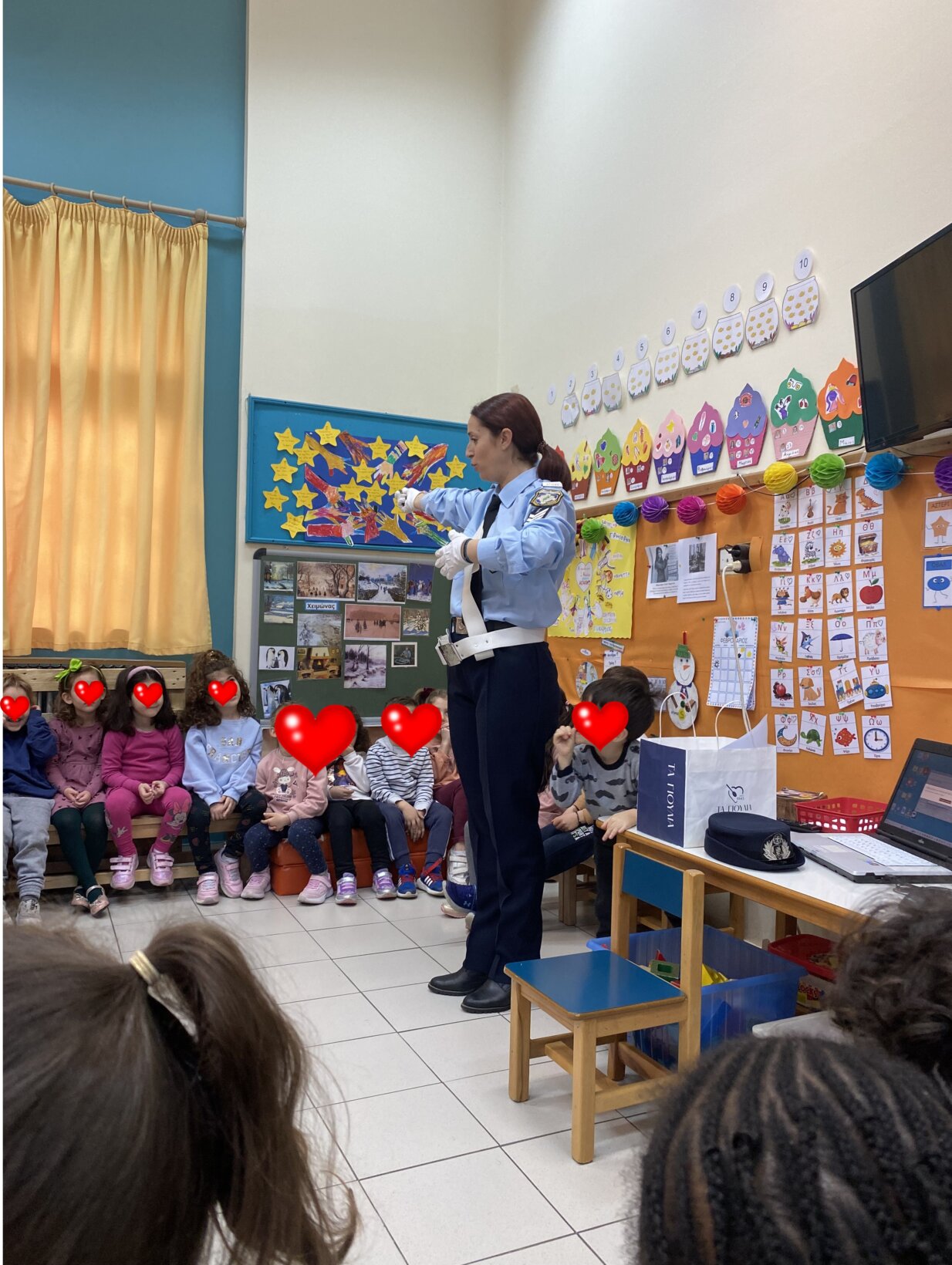 Άλλο ένα επάγγελμα που απαιτεί την ένδυση με στολή, είναι αυτό του Αστυνομικού. Η κα Ελένη ήρθε με τη στολή της στο σχολείο και μιλήσαμε πιο συγκεκριμένα για το επάγγελμα του Τροχονόμου. Έγινε και μια μικρή αναφορά σε σωστές οδηγικές συμπεριφορές.
