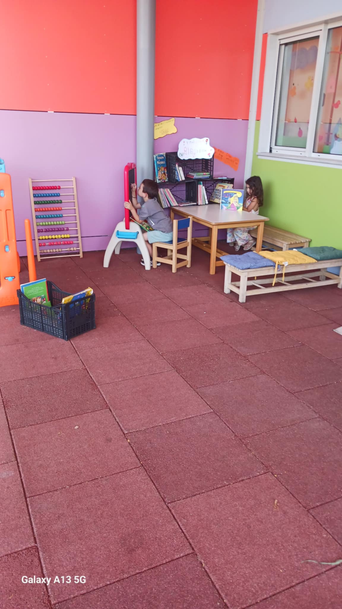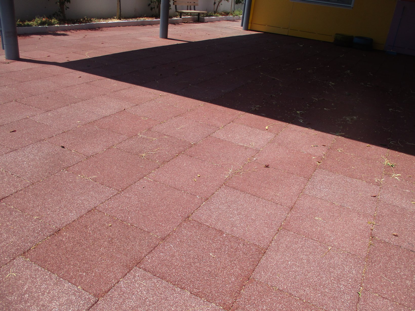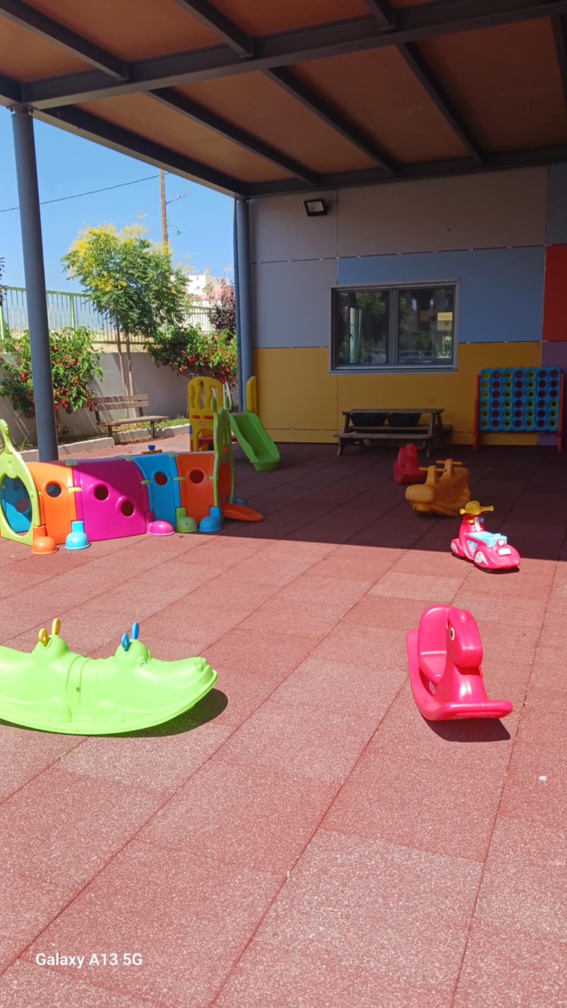 Ξερόχορτα γύρω από την αυλή μας και χορταριασμένα παρτέρια και με αυλή χωρίς παιχνίδια, στρωμένη μόνο με πλακάκια από καουτσούκ.