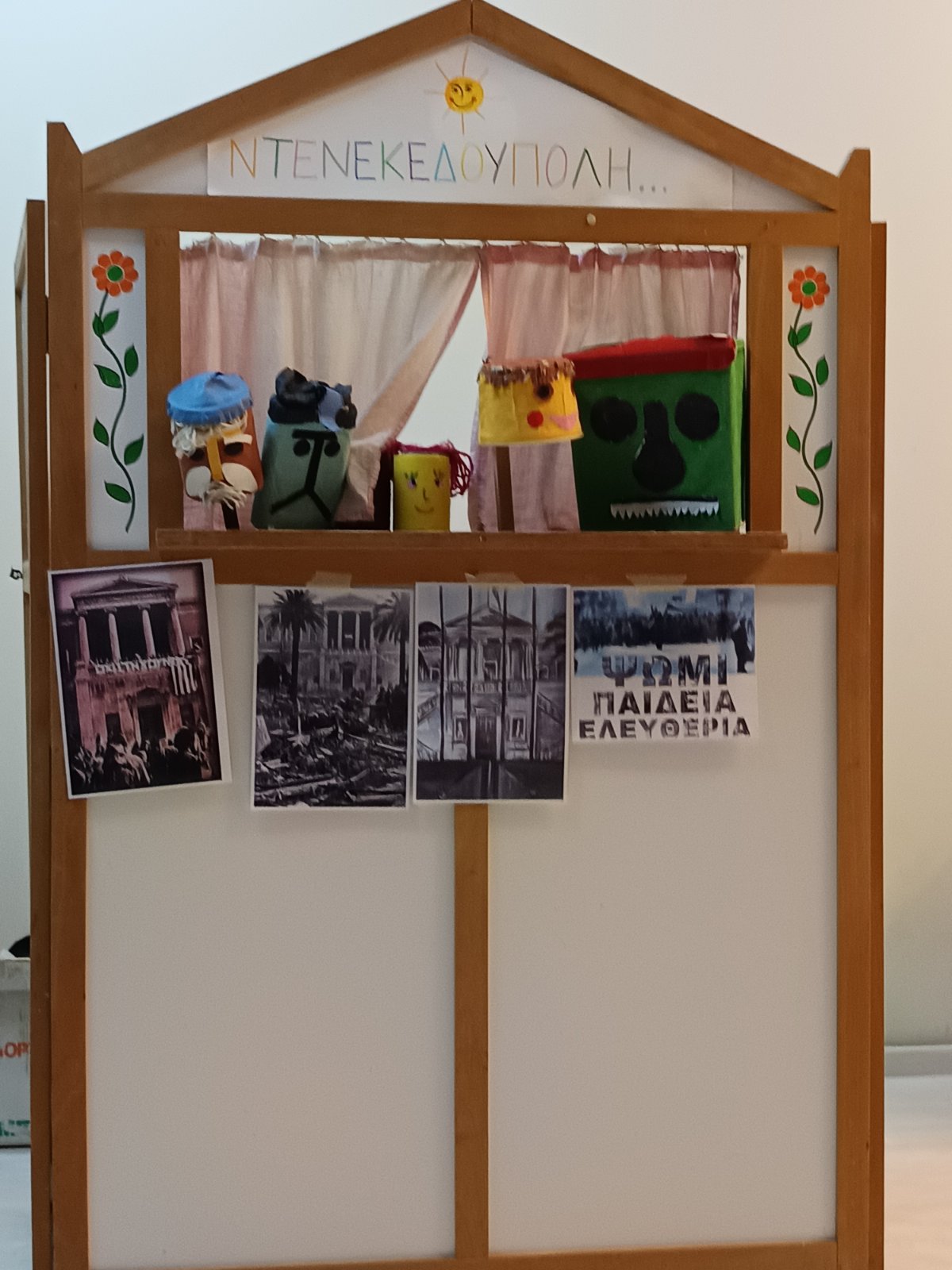 Σήμερα τα παιδιά ήρθαν στο Νηπιαγωγείο μας για να τιμήσουν την επέτειο του Πολυτεχνείου μια μέρα αφιερωμένη στη Δημοκρατια και παρακολουθησαν παρασταση κουκλοθέατρου με την αγαπημένη τους Τενεκεδούπολη από τις εκπαιδευτικούς κα Λίνα και κα Λιάνα. Φώναξαν το σύνθημα του Πολυτεχνείου και άκουσαν σχετικά τραγούδια.
