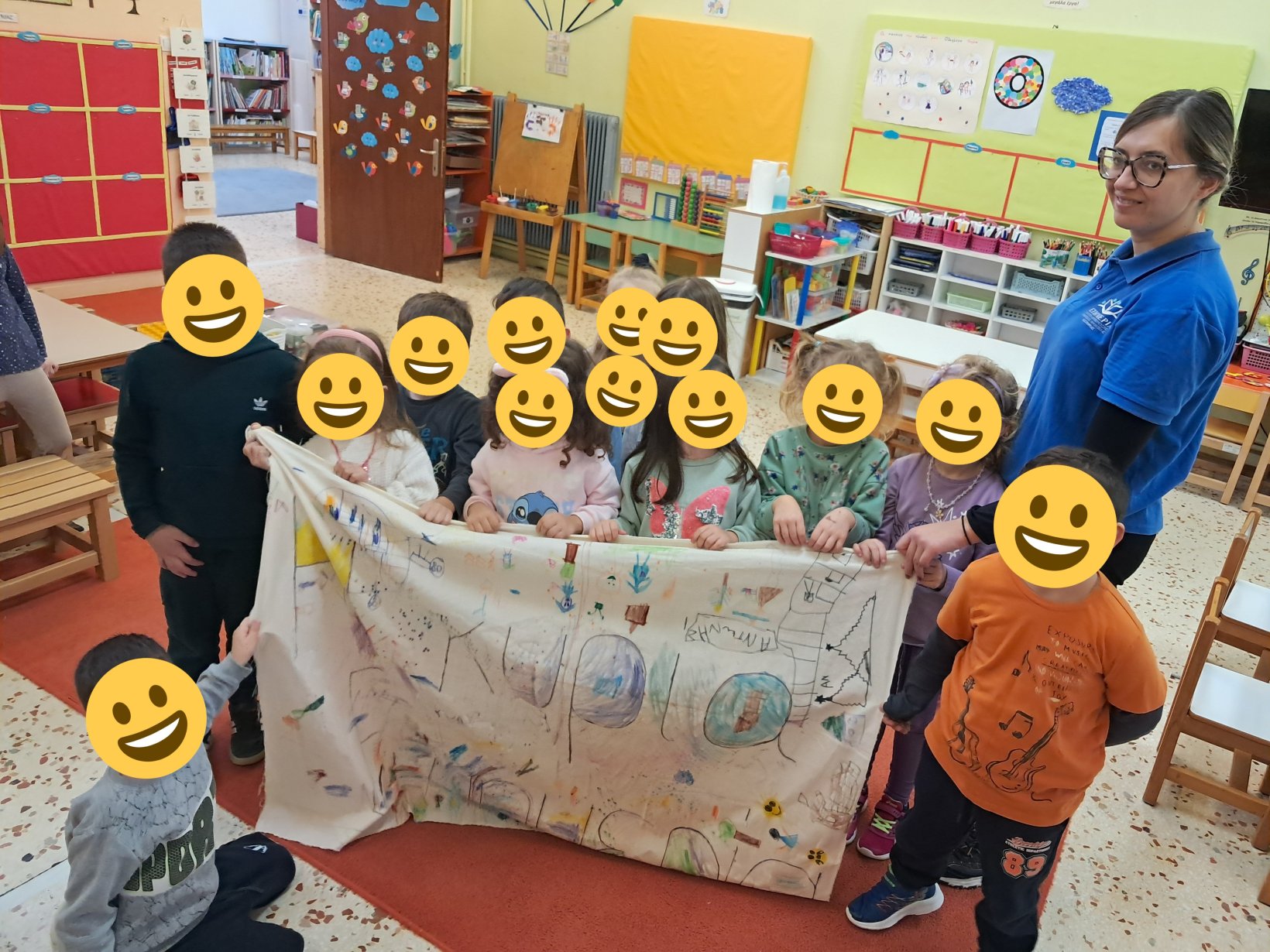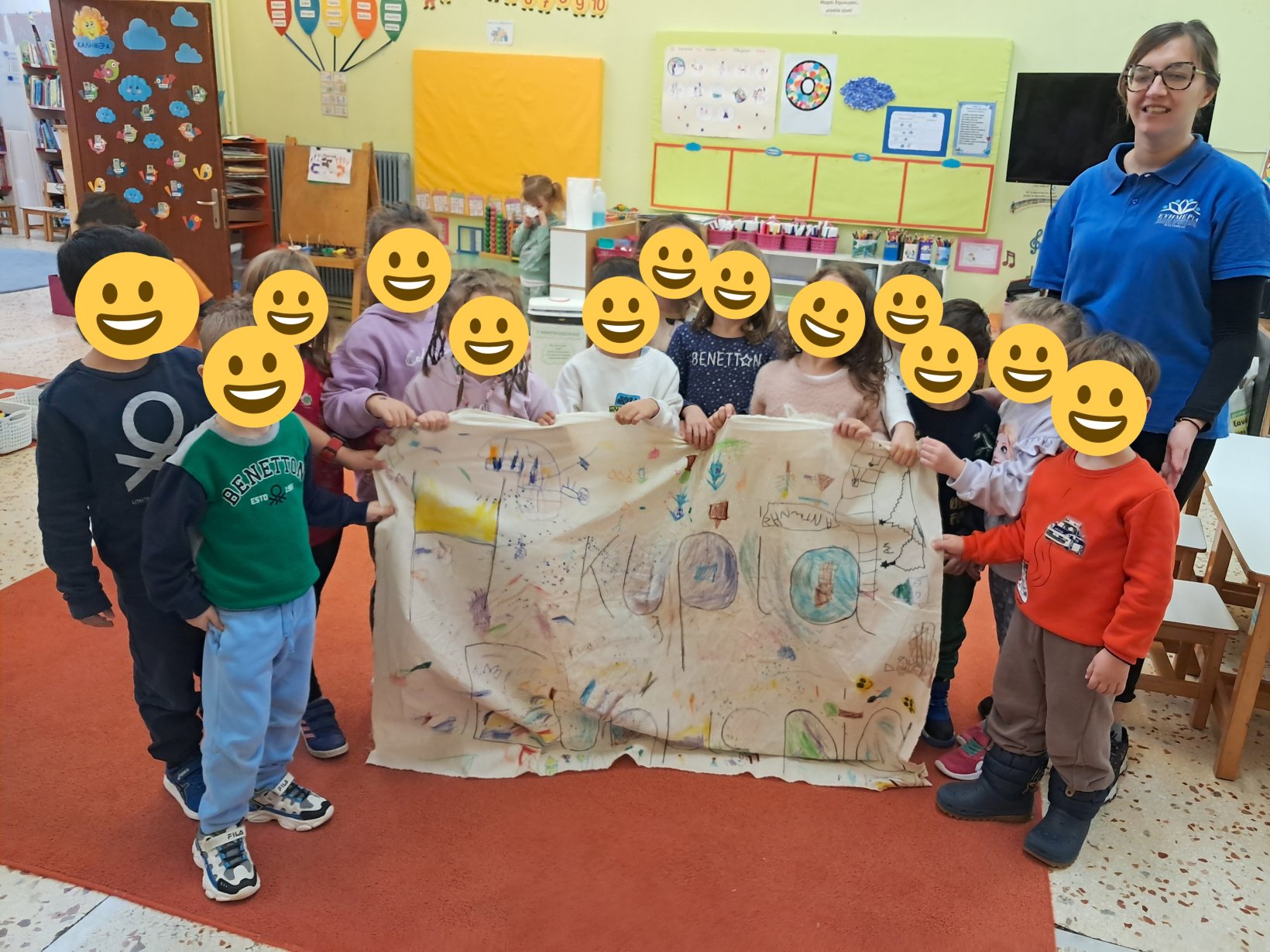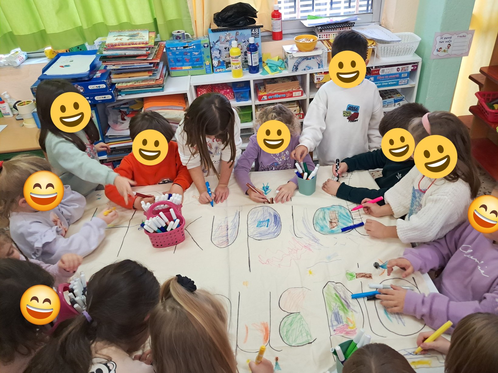 Τέλος όλα τα παιδιά μαζί συνεργάστηκαν και ζωγράφισαν με όμορφα χρώματα και σχέδια ένα πανό που έγραφε