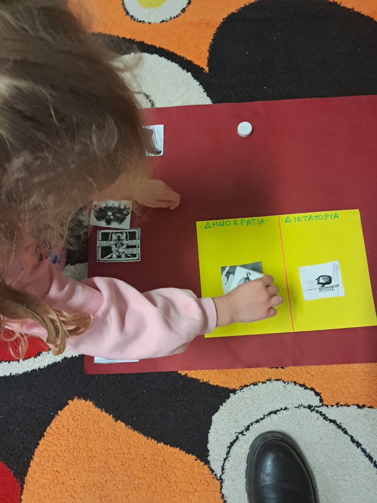 Τα παιδιά επιλέγουν εικόνες και τις κατατάσσουν ομαδικά σε μια λίστα δημοκρατία ή δικτατορία ?