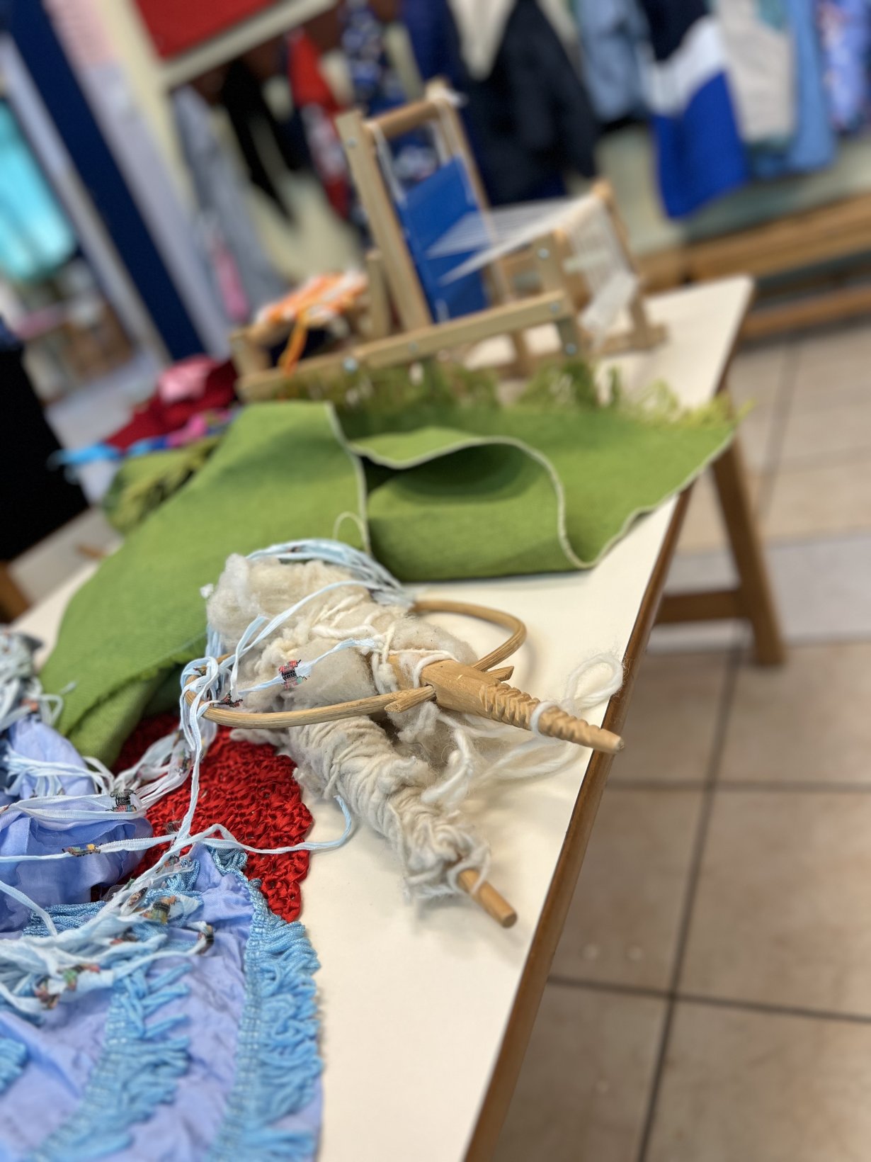 Την Παρασκευή 21 Νοεμβρίου 2025, οι μαθητές του Νηπιαγωγείου μας παρακολούθησαν στο χώρο του σχολείου το πρόγραμμα “Κόβω, ράβω, παίζω: Η Τέχνη του υφάσματος”. Γνωρίσαμε το βαμβάκι και το μαλλί και ακολουθήσαμε τη διαδρομή τους, ώσπου να γίνουν κλωστή και ύστερα ρούχο, χαλί, πάπλωμα, κουρτίνα, φουλάρι κ.α. Οι μικροί μαθητές ήρθαν σε επαφή με τον αργαλειό και άκουσαν την ιστορία των κουβαριών στο κουκλοθέατρο! Τέλος, στους μικρούς μαθητές δόθηκαν υφασμάτινες τσάντες ως αναμνηστικό, στις οποίες ζωγράφισαν ματάκια πάνω στα σκιουράκια, όπως επίσης έγραψαν και το όνομα τους!!!