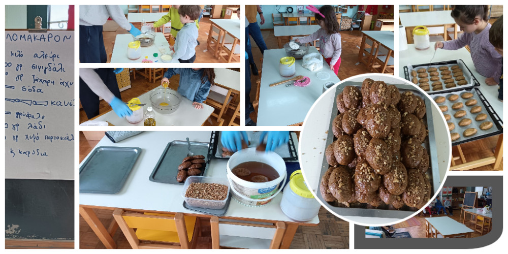Στα πλαίσια των Χριστουγεννιάτικων Δράσεων και του Σχεδίου Δράσης που αφορά τις σχέσεις Σχολείου – Οικογένειας με πολύ χαρά και ΟΡΕΞΗ υποδεχθήκαμε στο νηπιαγωγείο μας την Τετάρτη 13 Δεκεμβρίου τον κ. Ράντογλου Δημήτριο, μάγειρα – αρτοποιό και πατέρα νηπίου του σχολείου μας για να παρασκευάσει μαζί με τα παιδιά μελομακάρονα.