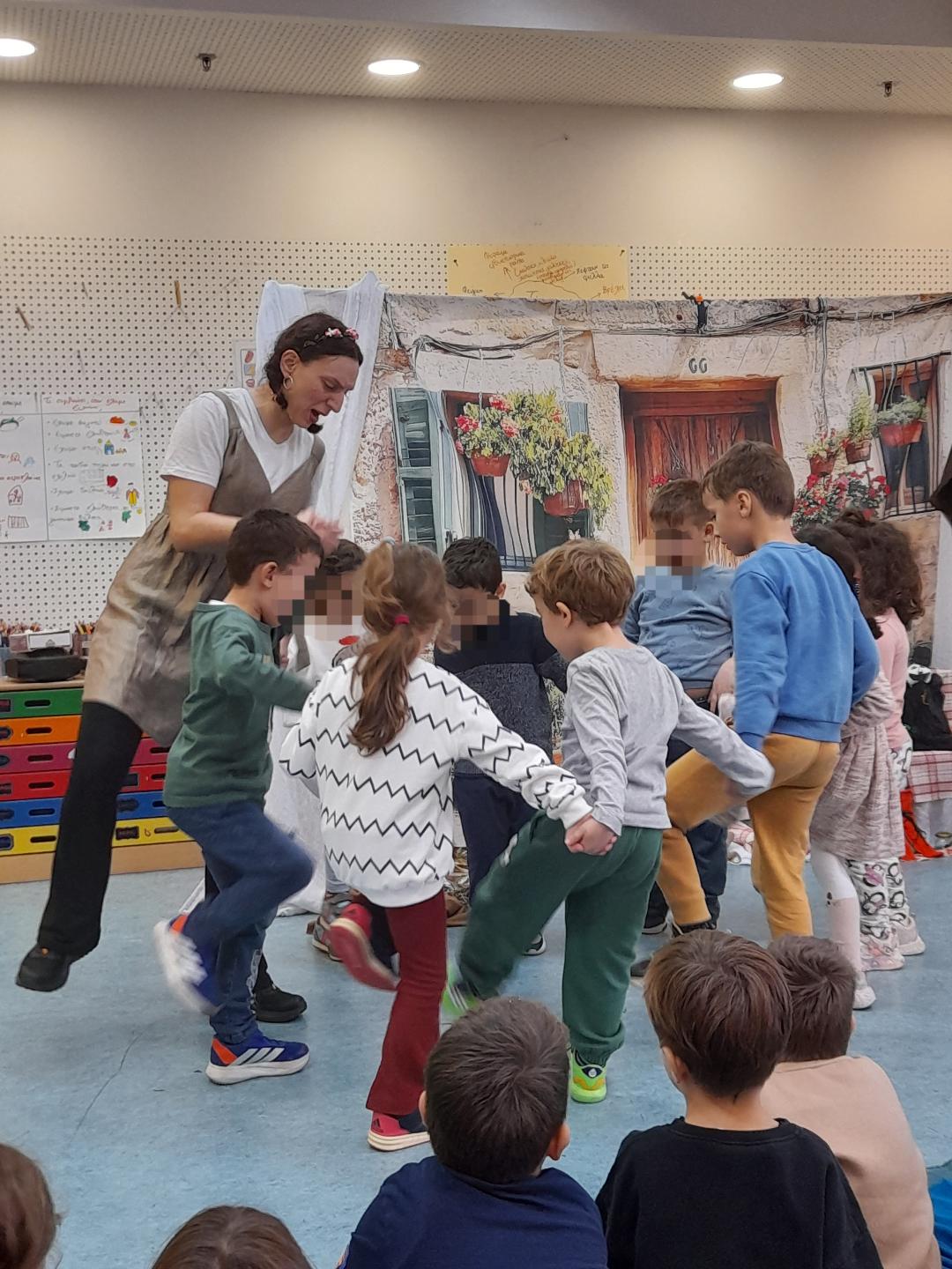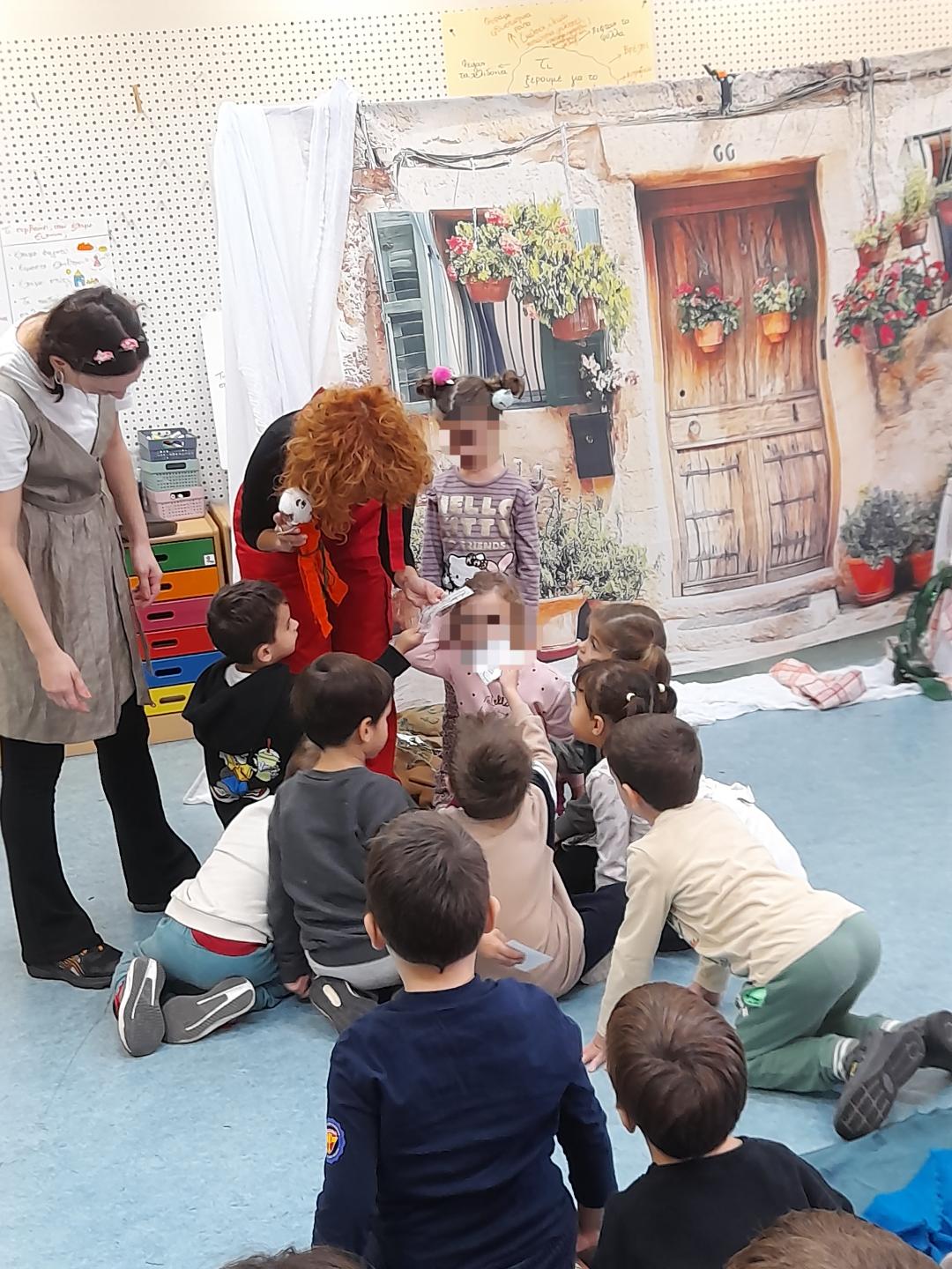 Η θεατρική ομάδα “Χρόνος” επισκέφτηκε το νηπιαγωγείο μας ώστε να παρακολουθήσουμε και να συμμετέχουμε σε θεατρικά δρώμενα σχετικά με μύθους και παραδόσεις γύρω από την ελιά.