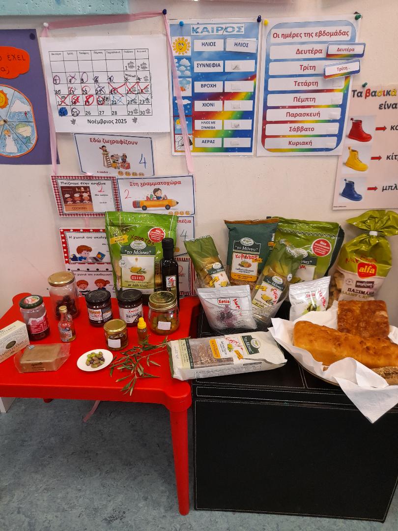 Κάθε παιδί έφερε από το σπίτι του κάποιο προιόν της ελιάς και έτσι είχαμε την ευκαιρία όχι μόνο να τα δούμε αλλά και να τα γευτούμε! Ευχαριστούμε πολύ όλους τους γονείς που ανταποκρίθηκαν και χαρίσαμε στα παιδιά μια διαφορετική εμπειρία!