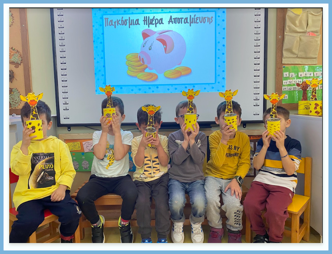 Στο νηπιαγωγείο μας με αφορμή την Παγκόσμια Ημέρα Αποταμίευσης μιλήσαμε για την έννοια αυτή την οποία ακούμε από μικρή ηλικία, όταν ξεκινάμε να διαχειριζόμαστε το χαρτζιλίκι μας.