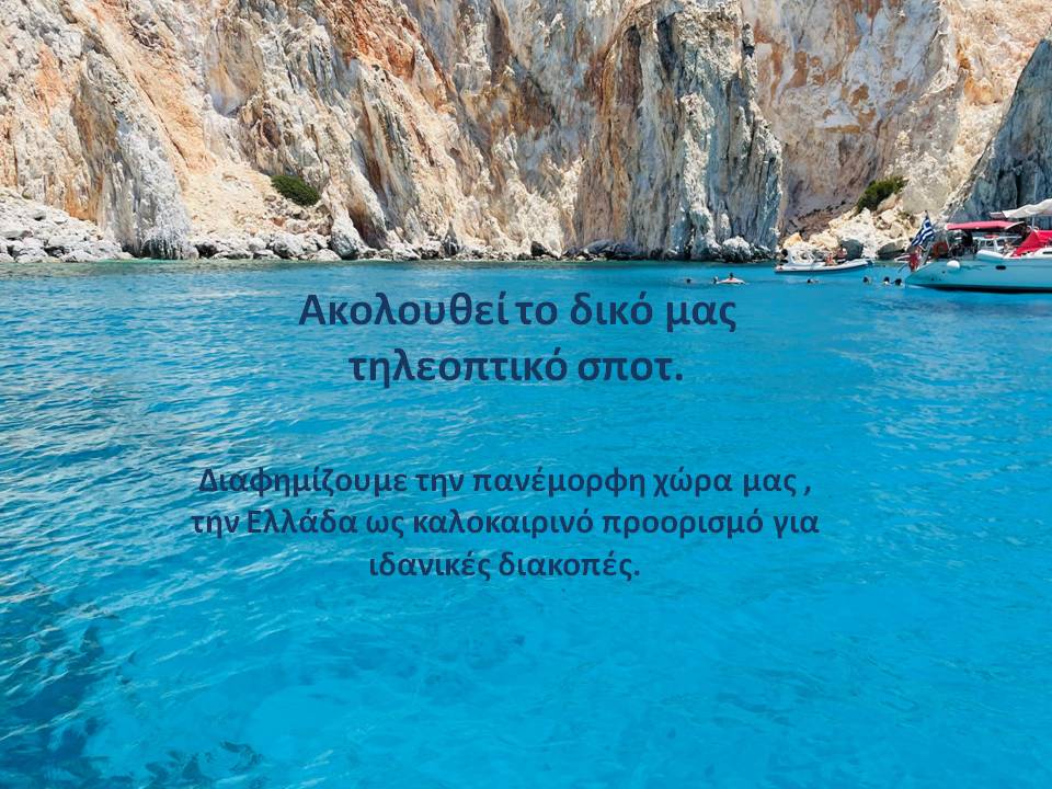 Έχοντας την τύχη να ζούμε σε μία από τις ομορφότερες χώρες του κόσμου διαφημίζουμε την Ελλάδα μας ως ιδανικό προορισμό για μοναδικές διακοπές!