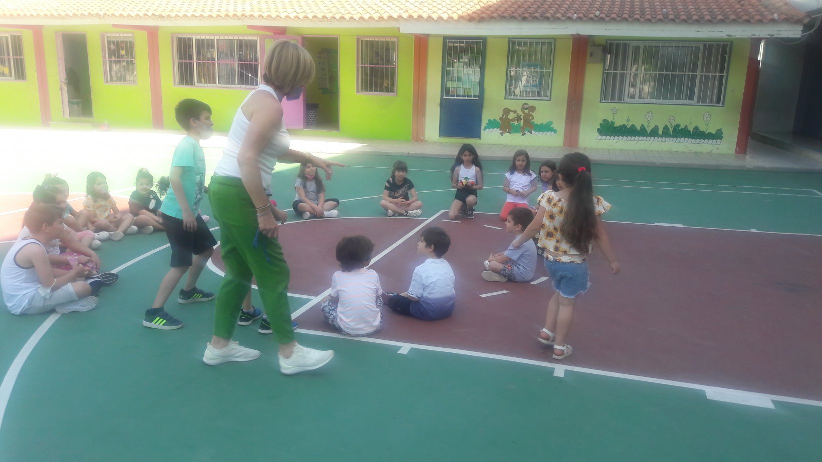 Στο Νηπιαγωγείο μας φέτος και στο πλαίσιο της ομαλής μετάβασης των νηπίων μας στο Δημοτικό, εφαρμόζοντας τις δύο βασικές αρχές, της Συνεργασίας και της Συνέχειας,  προσπαθήσαμε να ενισχύσουμε τους δεσμούς των δύο σχολείων με τη βοήθεια της Γυμνάστριας, κυρίας Καίτης Βαϊτση, που αποτελεί μια από τις σταθερές αξίες του 92ου Δημοτικού Σχολείου Αθηνών.