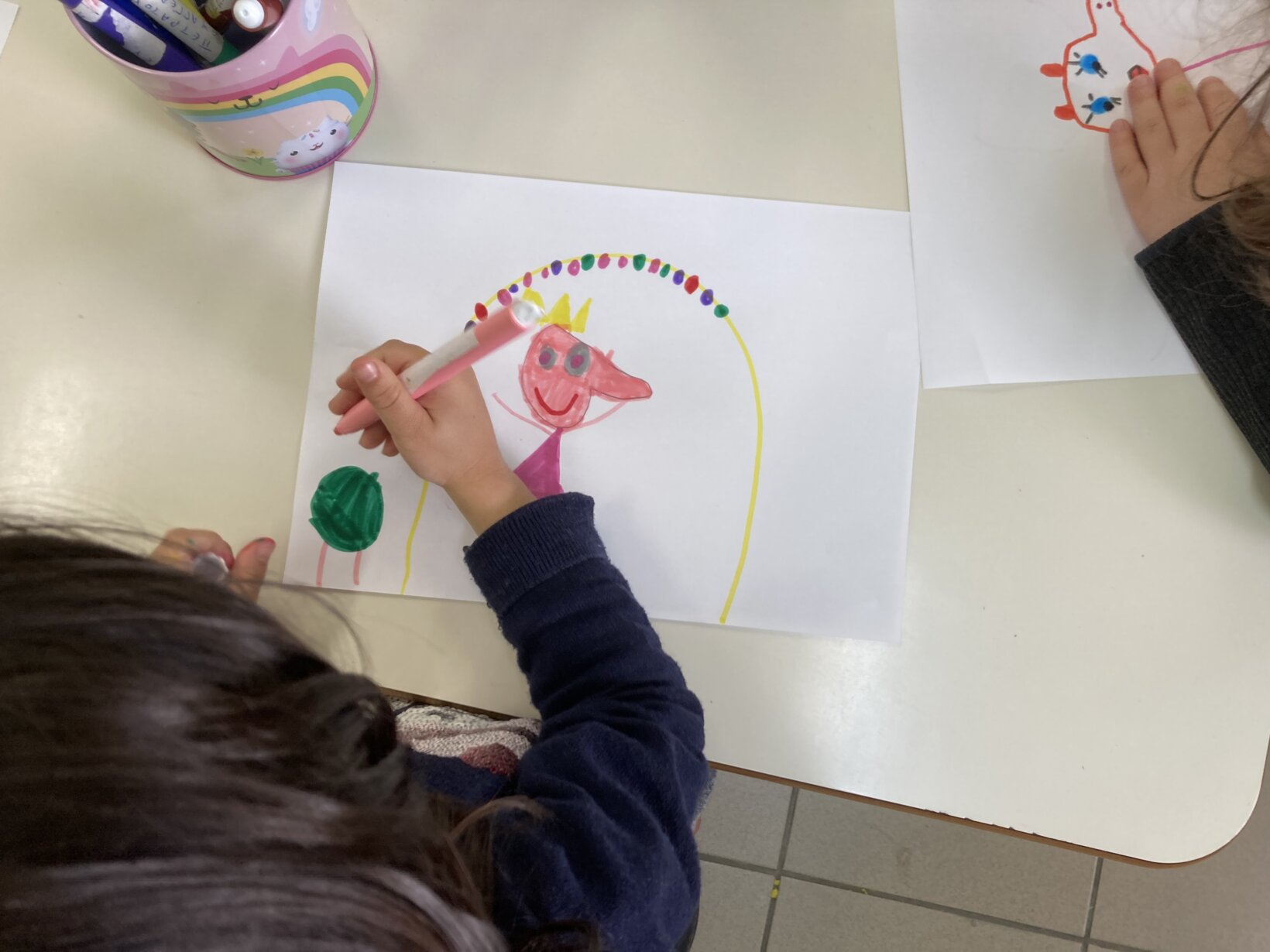 Τον Φεβρουάριο συνεχίσαμε με τις ρουτίνες που αποτελούν καθημερινό κομμάτι τους μαθήματος. Μιλήσαμε για τις εποχές ακούγοντας και ένα νέο τραγούδι “Seasons song” https://youtu.be/8ZjpI6fgYSY. Μιλήσαμε για τον καιρό για να εμπεδώσουν οι μαθητές τη συγκεκριμένη ενότητα και συγκεκριμένα διαβάσαμε ένα παραμύθι για τα σύννεφα και ζωγραφίσαμε κάτι αντίστοιχο. Προς το τέλος Φεβρουαρίου είδαμε ένα επεισόδιο Peppa pig για τις απόκριες “Peppa Pig – Fancy Dress Party”https://youtu.be/KM-1WApbEsU και κάναμε και σχετική εργασία.