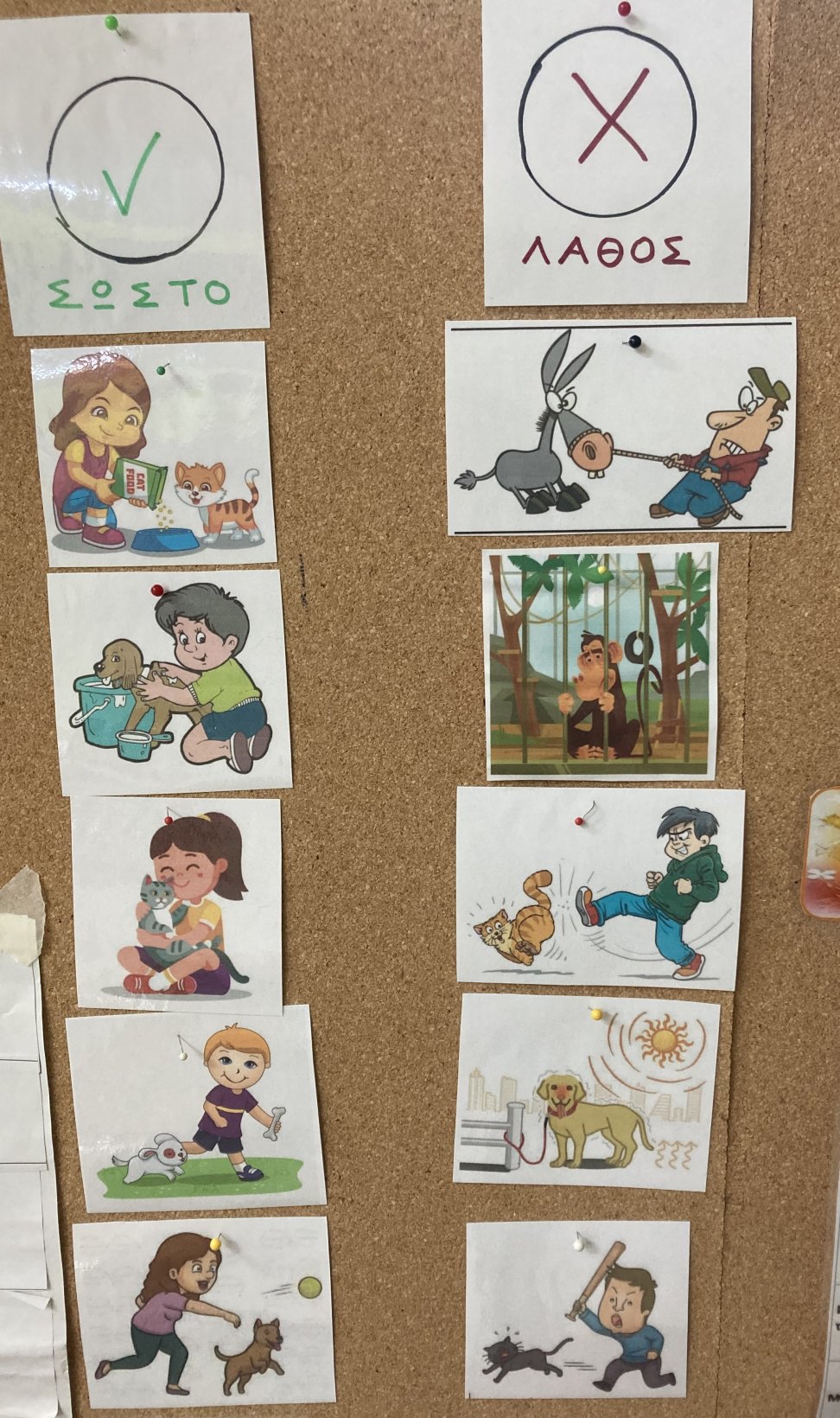 α. Ξεχωρίσαμε σωστές και λάθος συμπεριφορές απέναντι στα ζώα, μαθαίνοντας πώς πρέπει να τα φροντίζουμε και να τα σεβόμαστε.