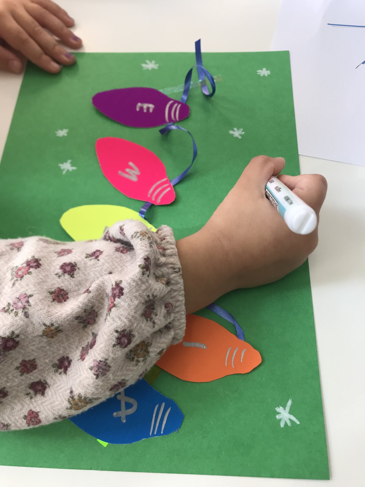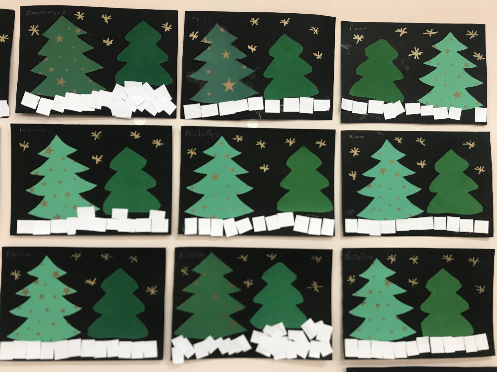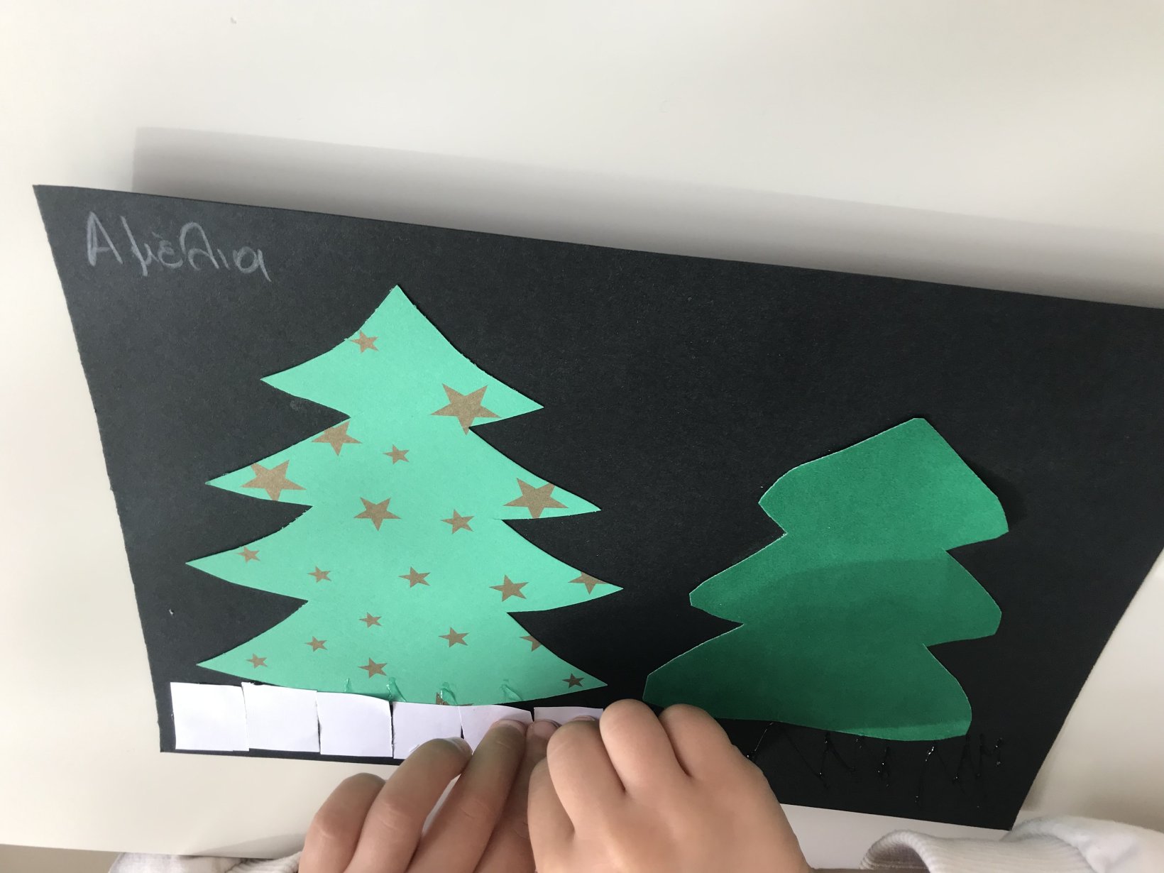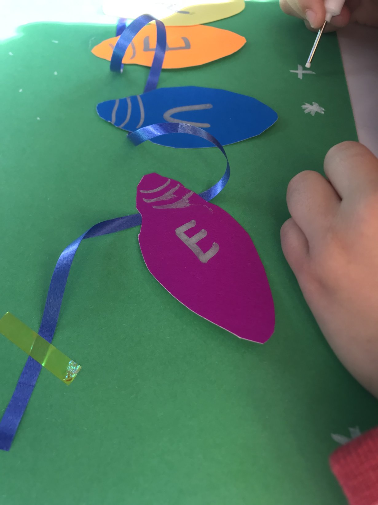 Αφού στέγνωσαν, έκαναν σχέδια με γκλίτερ πάνω στο δεντράκι.